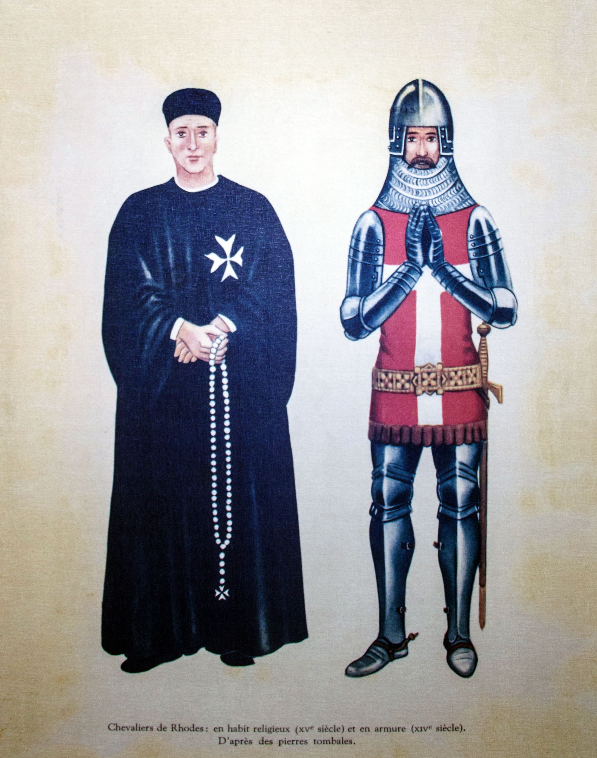 An illustration of a priest and knight of the military order the Knights Hospitaller. 14th-15th century CE. (From a work in the Sacra Infermeria Museum, Valletta)