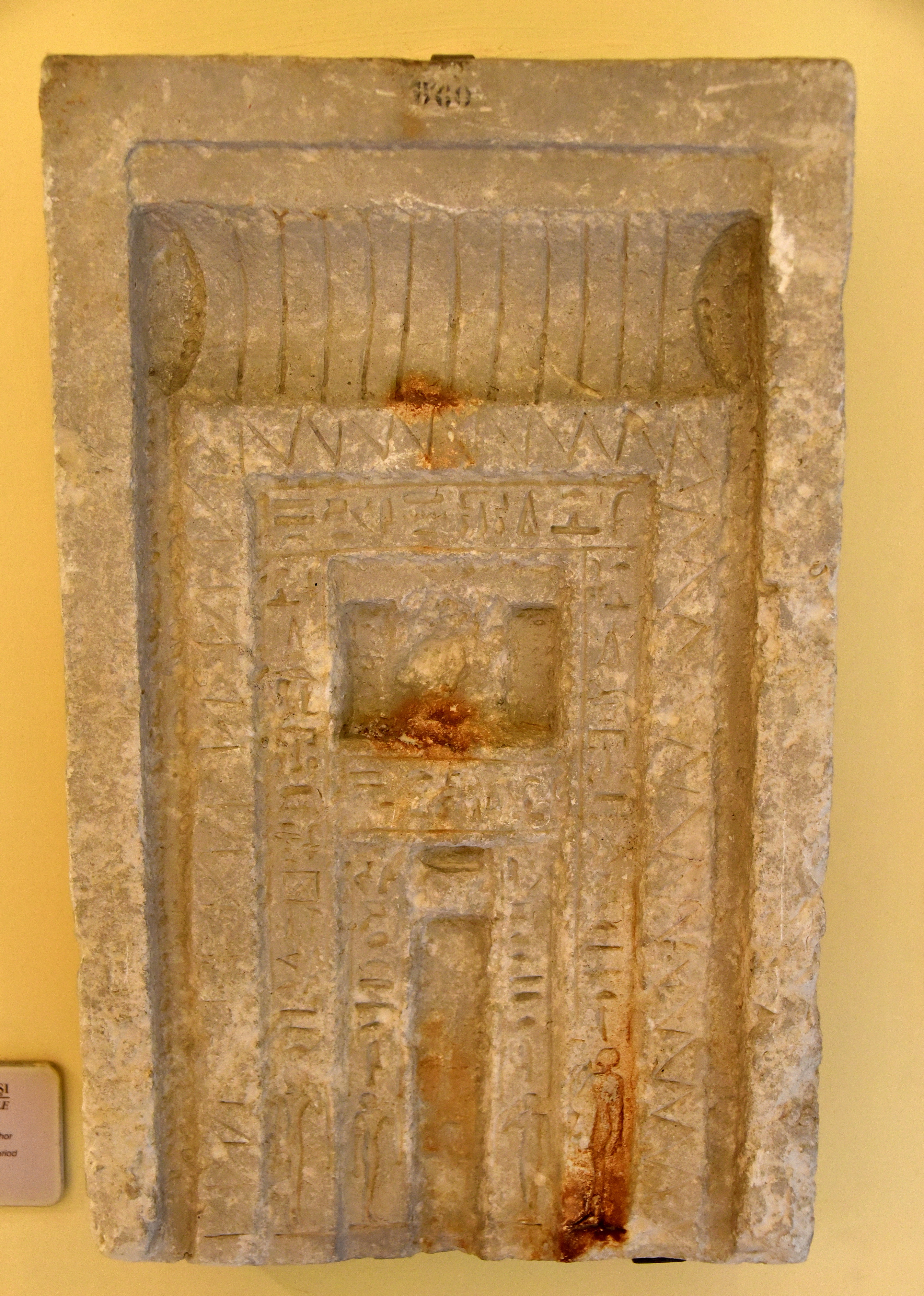 This is a door-shaped limestone stele of a priestess of the goddess Hathor. First Intermediate Period, 2134-2040 BCE. From Egypt. (Ancient Orient Museum, Istanbul, Turkey).