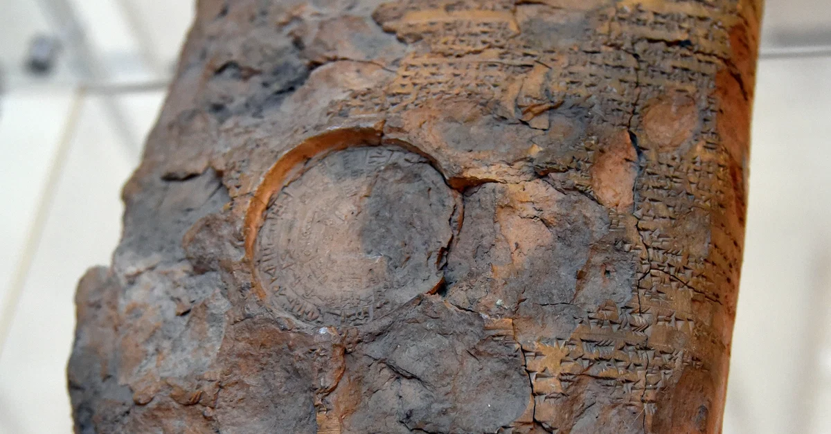 This clay tablet refers to the gift given by the king Arnuwanda and queen Asmunikal. The gift was a group of slaves, animals, and land which were given to the priestess temple Kuatalla on her marriage. The tablet was signed (stamped) with the names of the king, queen, witnesses, and the scribe. 13th century BCE, from Hattusa (Bogazkoy), in modern-day Turkey. (Museum of Archaeology, Istanbul, Turkey).