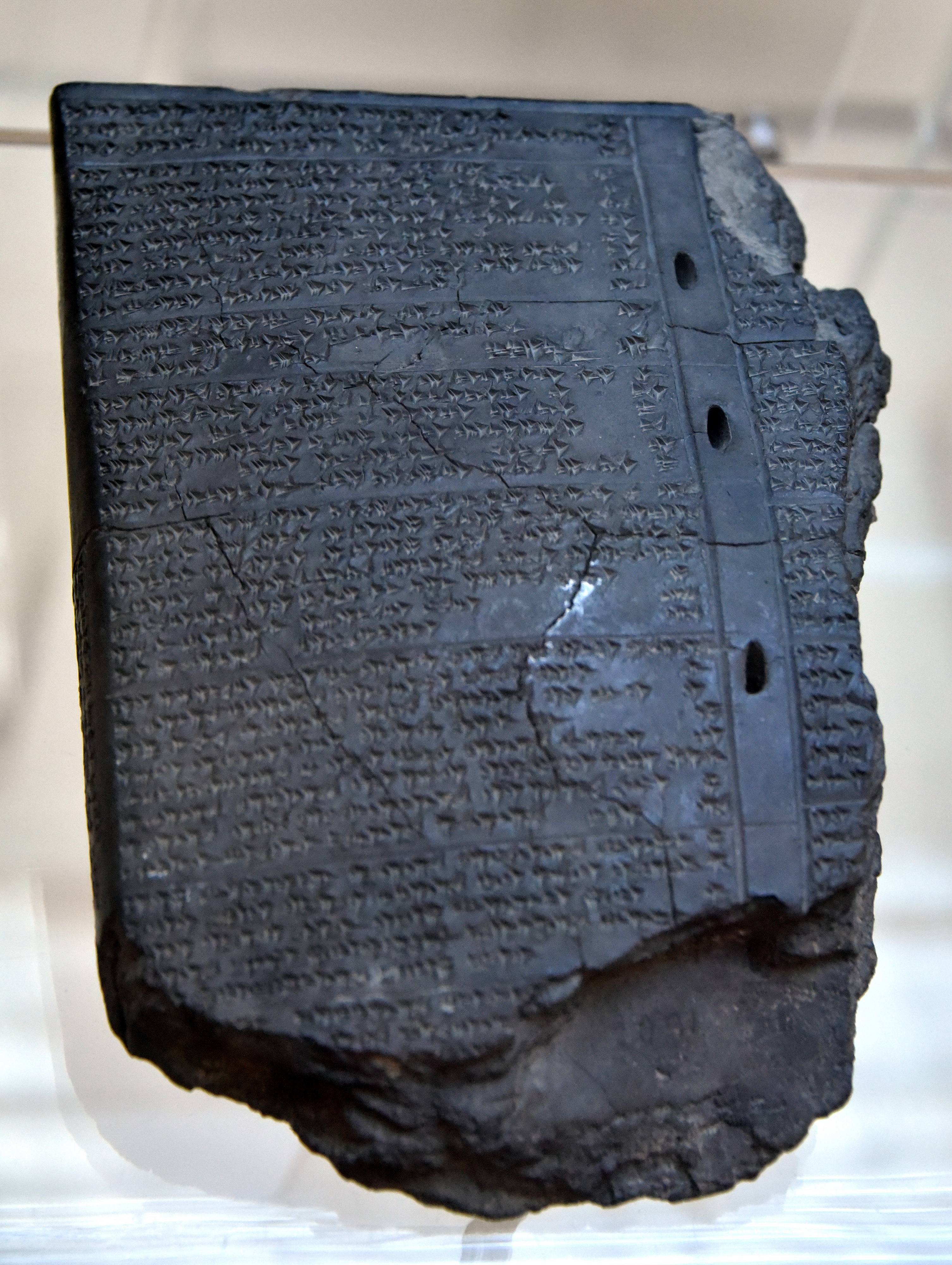 This tablet's text is one of the latest versions of the Hittite laws text. In spite of some modifications (for example from the 16th century BCE versions), the articles of these two versions run parallel to each other. One of the articles: Article V // Bo. 2097 article 7: "If anyone blinds a free man in a quarrel, he shall give 1 mina of silver. If (only) his hand does wrong, he shall give 20 shekels." 13th century BCE, from Hattusa (Bogazkoy), in modern-day Turkey. (Museum of Archaeology, Istanbul, Turkey).