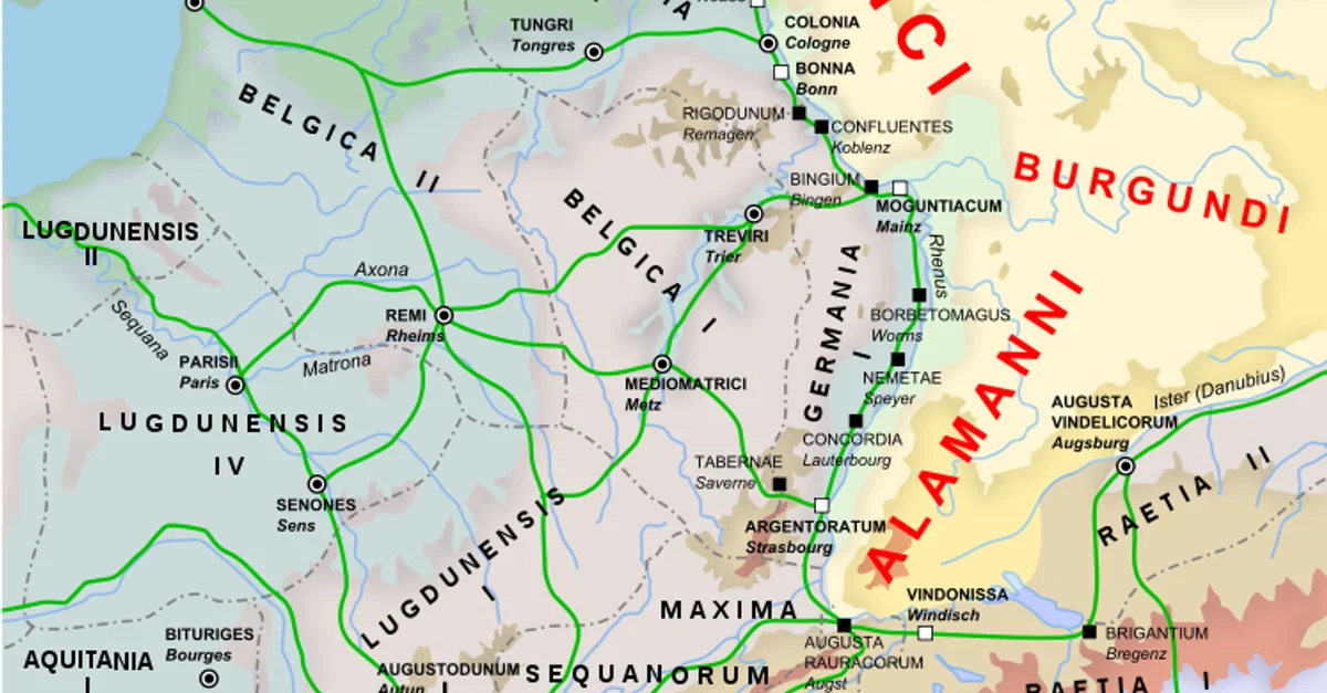 Nacu, A. (2018, September 14). Rhine Frontier of the Roman Empire, 4th century CE.. World History Encyclopedia. https://www.worldhistory.org/image/9223/rhine-frontier-of-the-roman-empire-4th-century-ce/
