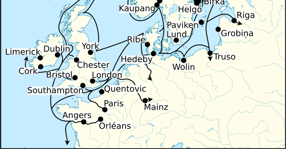 MacAmhlaidh, B. (2018, September 28). Viking Age Trade Routes in North-West Europe. World History Encyclopedia. https://www.worldhistory.org/image/9284/viking-age-trade-routes-in-north-west-europe/