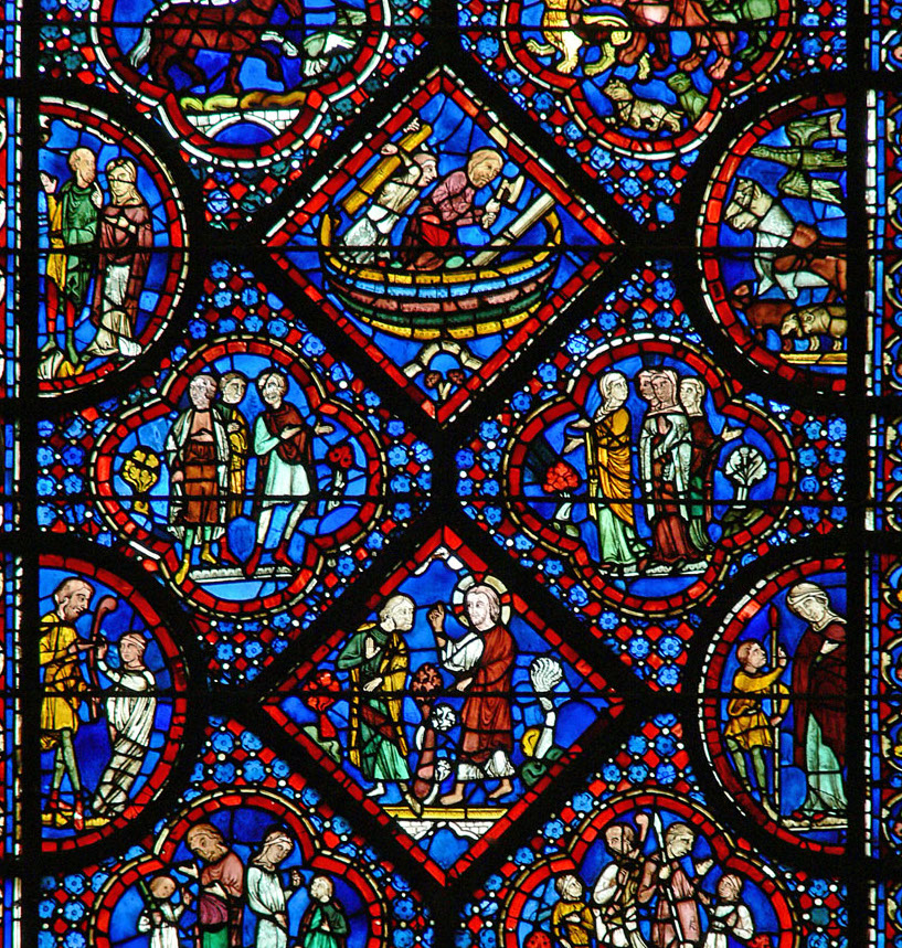 A detail of the Noah Window, Chartres Cathedral, 13th century CE.