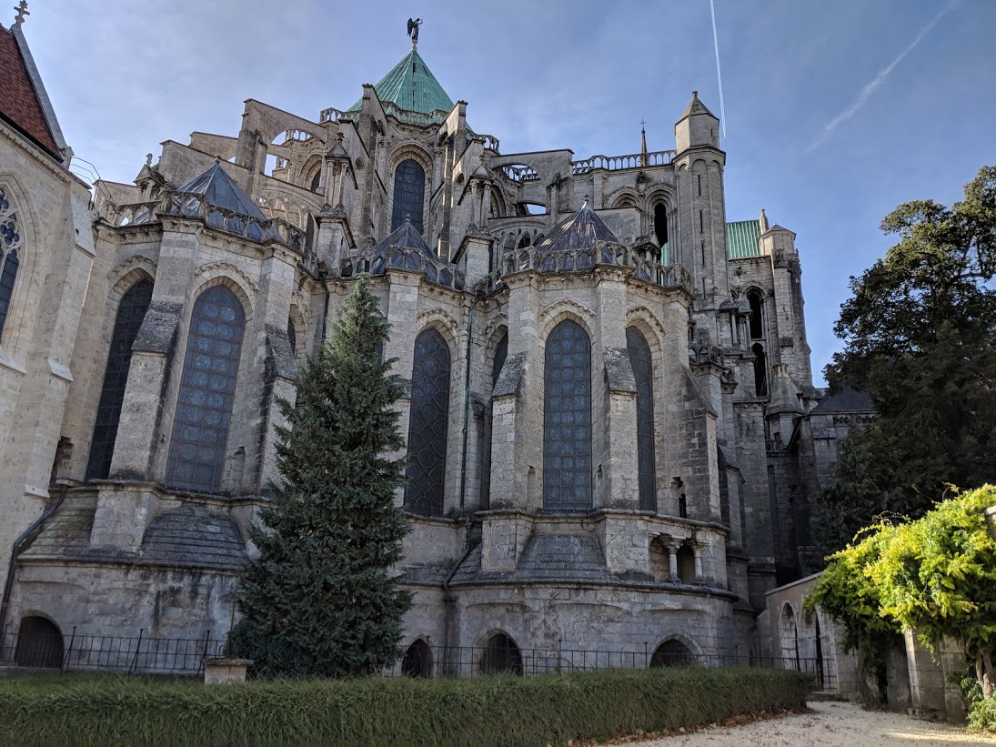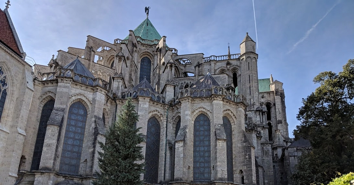 A view of the exterior of the apsidal chapels of Chartres Cathedral, France. Constructed between 1194 and 1220 CE.
