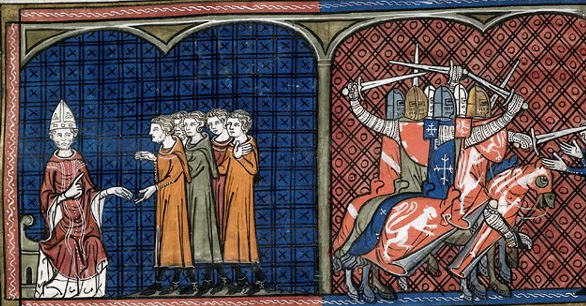A medieval manuscript illustration showing Pope Innocent III (r. 1198-1216 CE) and the crusaders of the Albigensian Crusade in southern France (1209-1229 CE). (Chronicles of Saint-Denis, British Library, London)