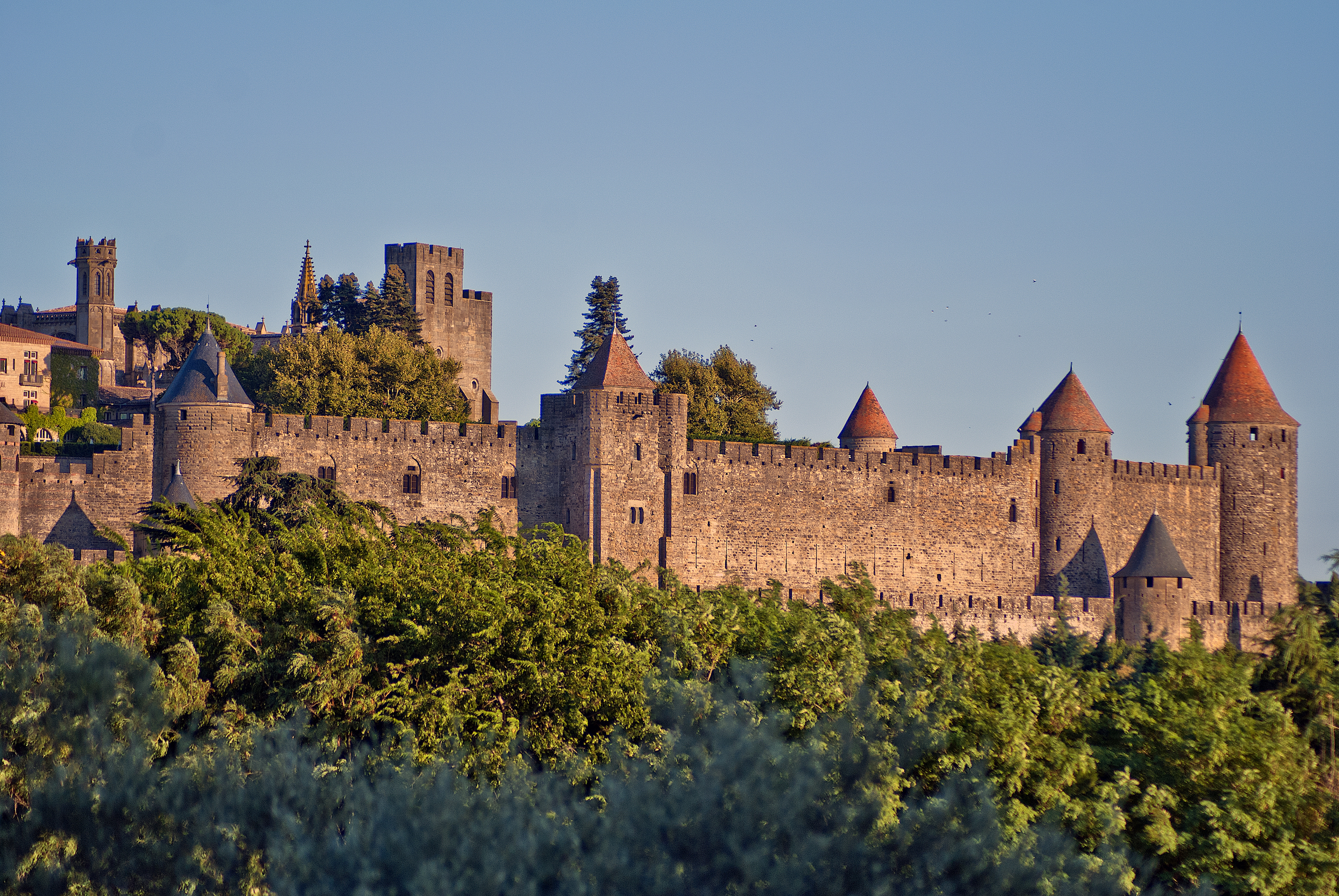 A section of the fortifications of Carcassonne, southern France.