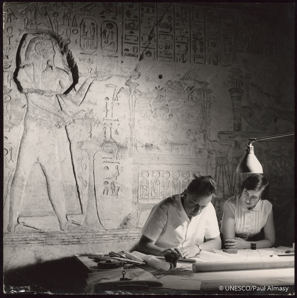 Geneva architect Jean Jacquet, a UNESCO expert, makes an architectural survey of the Great Temple of Rameses II (1290-1223 BCE). It is hoped that the temple will be preserved in its entirety [...].
