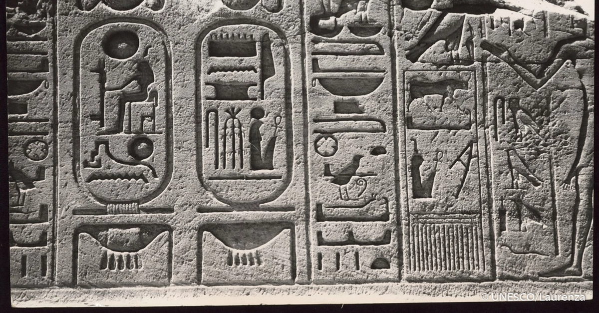 Laurenza, UNESCO /. "Hieroglyphics Detail, Abu Simbel." World History Encyclopedia, October 25, 2018. https://www.worldhistory.org/image/9374/hieroglyphics-detail-abu-simbel/.