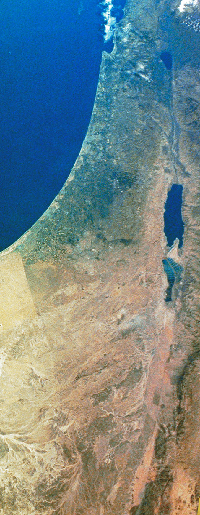 A satellite image of the region of the eastern Mediterranean variously known as Canaan, Phoenicia, Palestine and Israel throughout history.