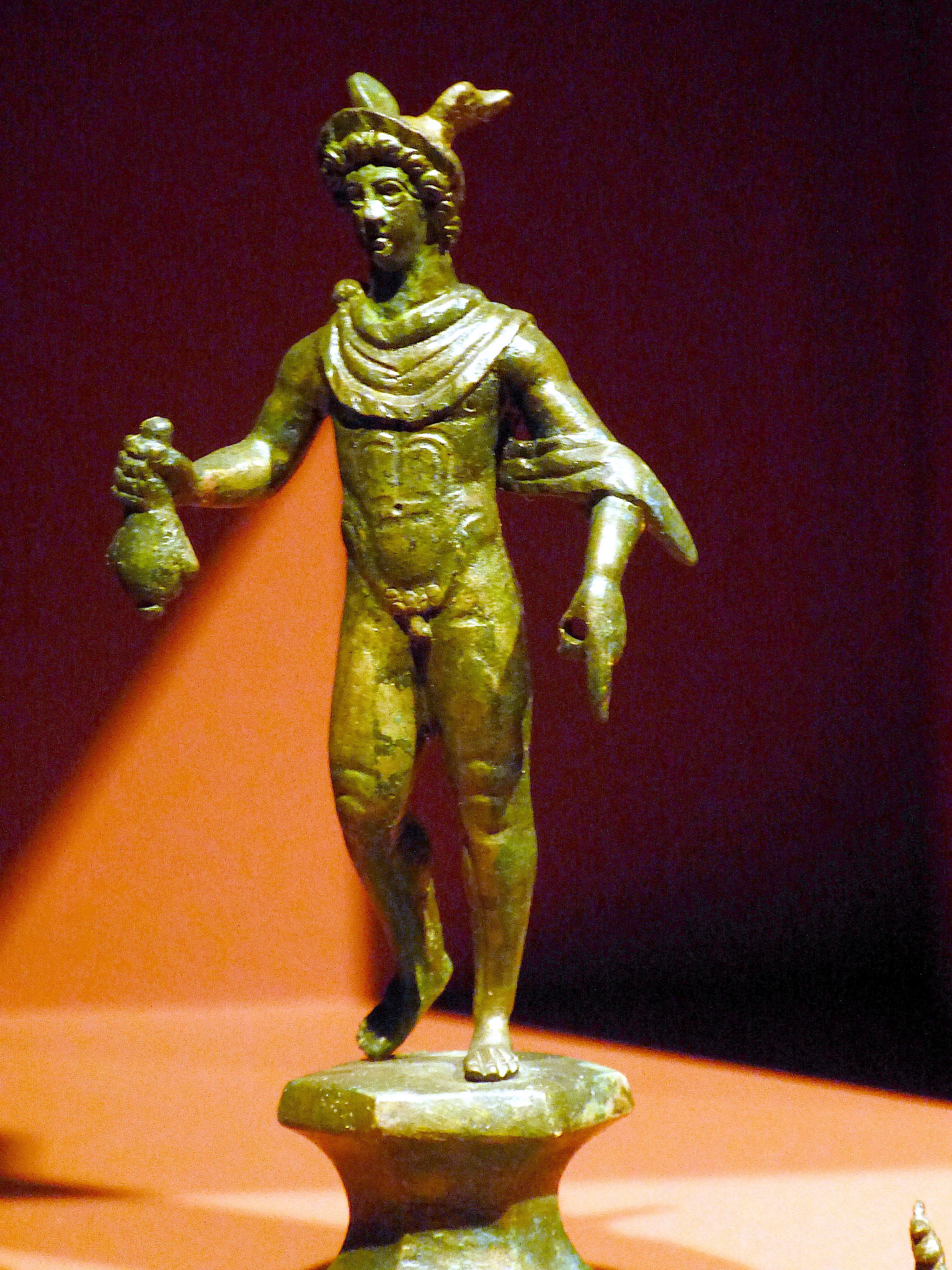 A Roman bronze statuette of the god Mercury (Mercurius), god of commerce and communication. 2nd-3rd century CE, Gäubodenmuseum: Roman treasure of Straubing.