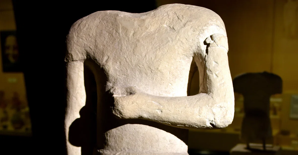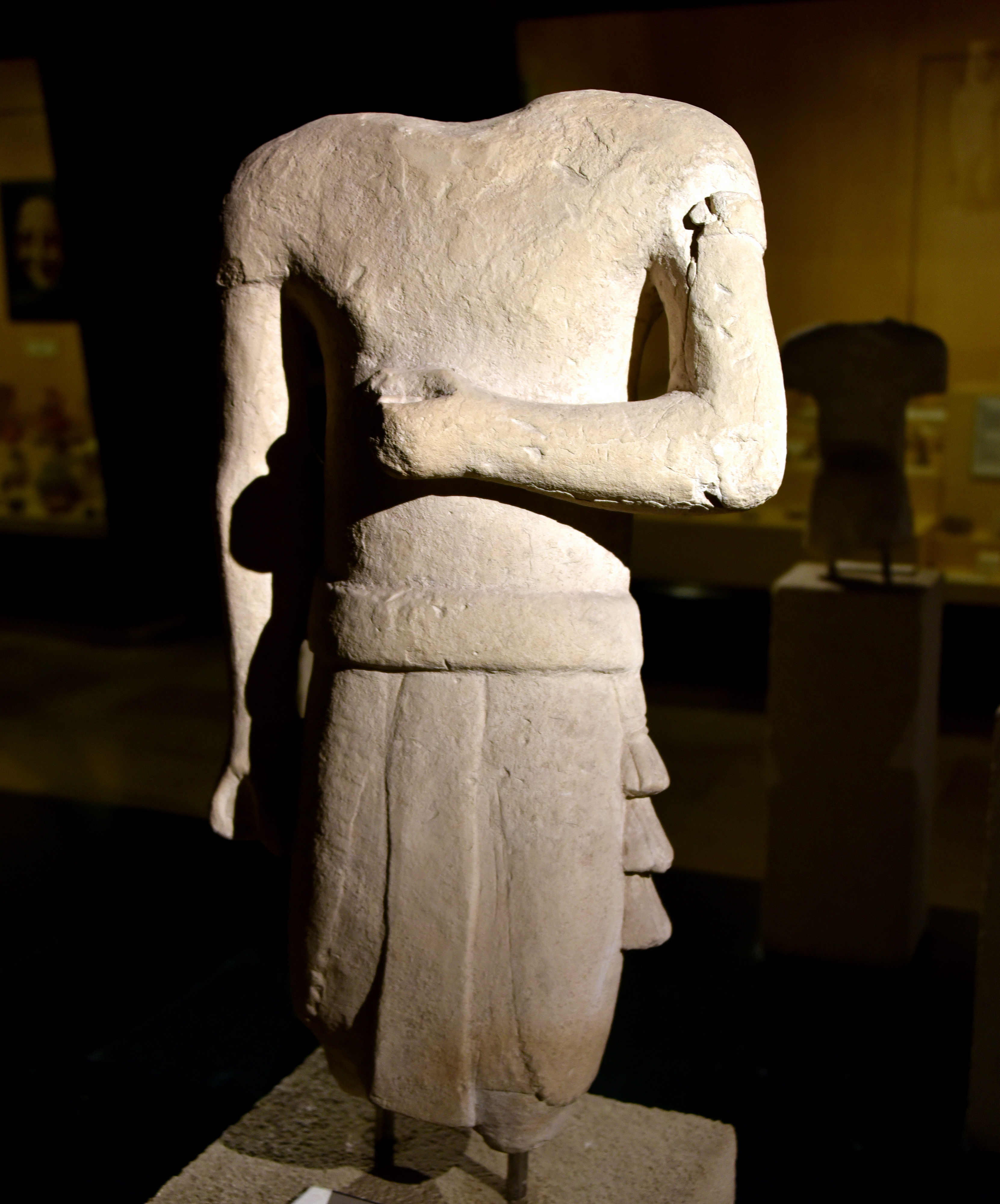 Marble statue of a male. IInd Proto-Cypriot style. From Cyprus. Mid-6th century BCE. (Museum of Archaeology, Istanbul, Turkey).