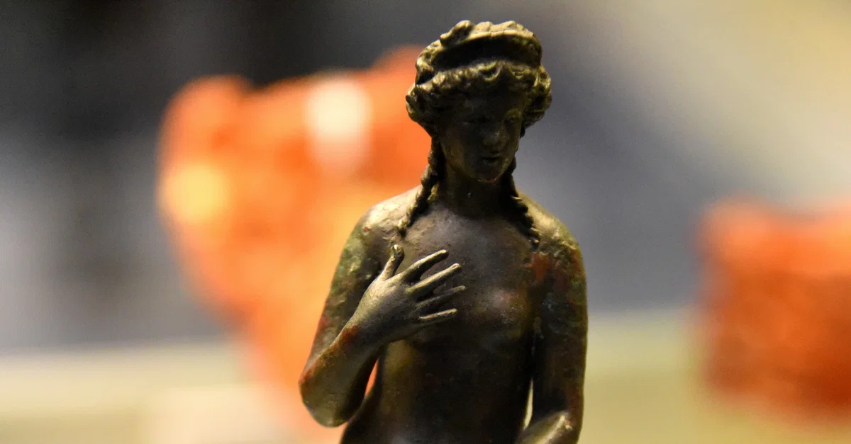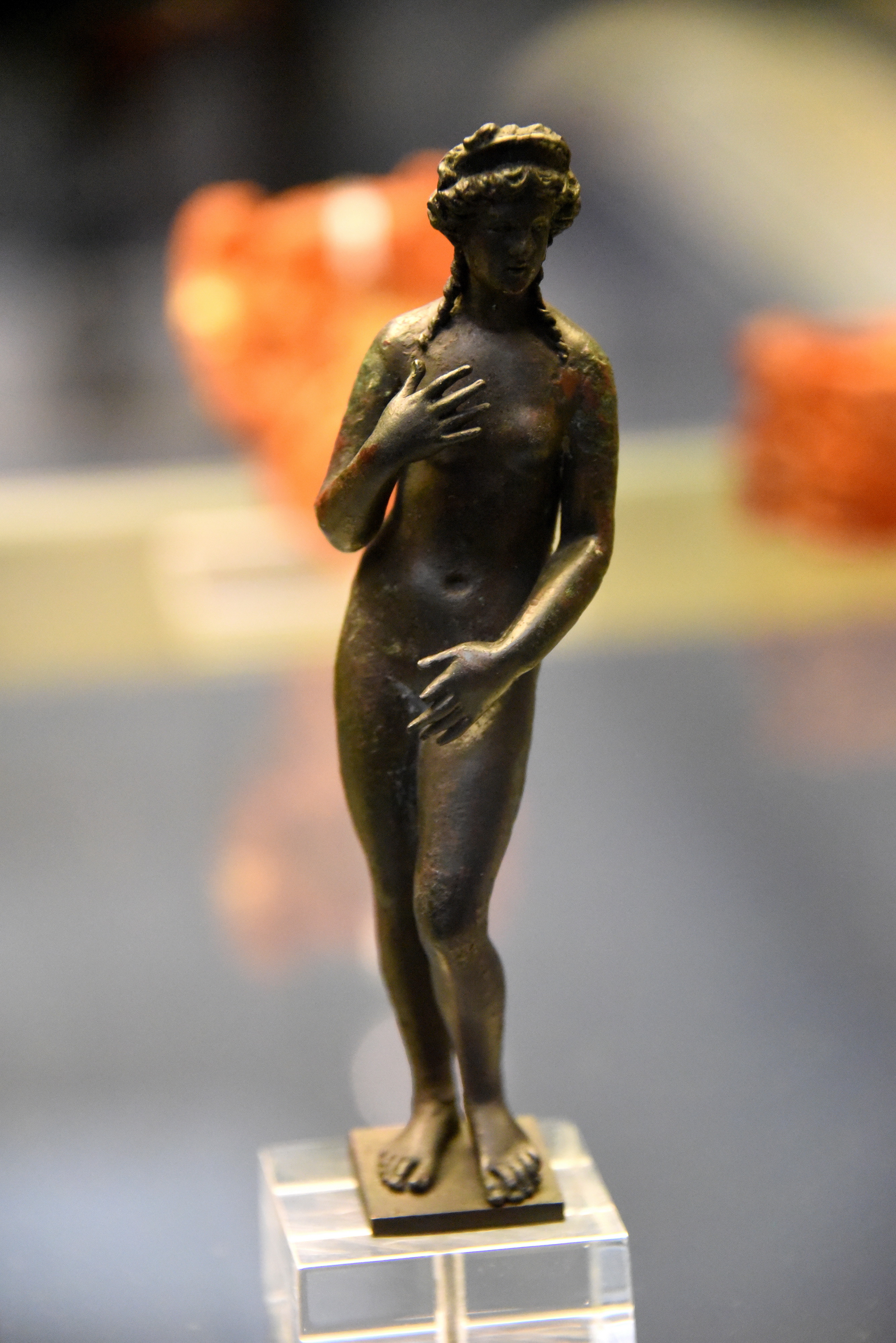 This is a bronze figure of Venus, goddess of love, fertility, sex, and beauty. Roman period, c. 1st century CE. Bequeathed by R. Payne Knight. (The British Museum, London).