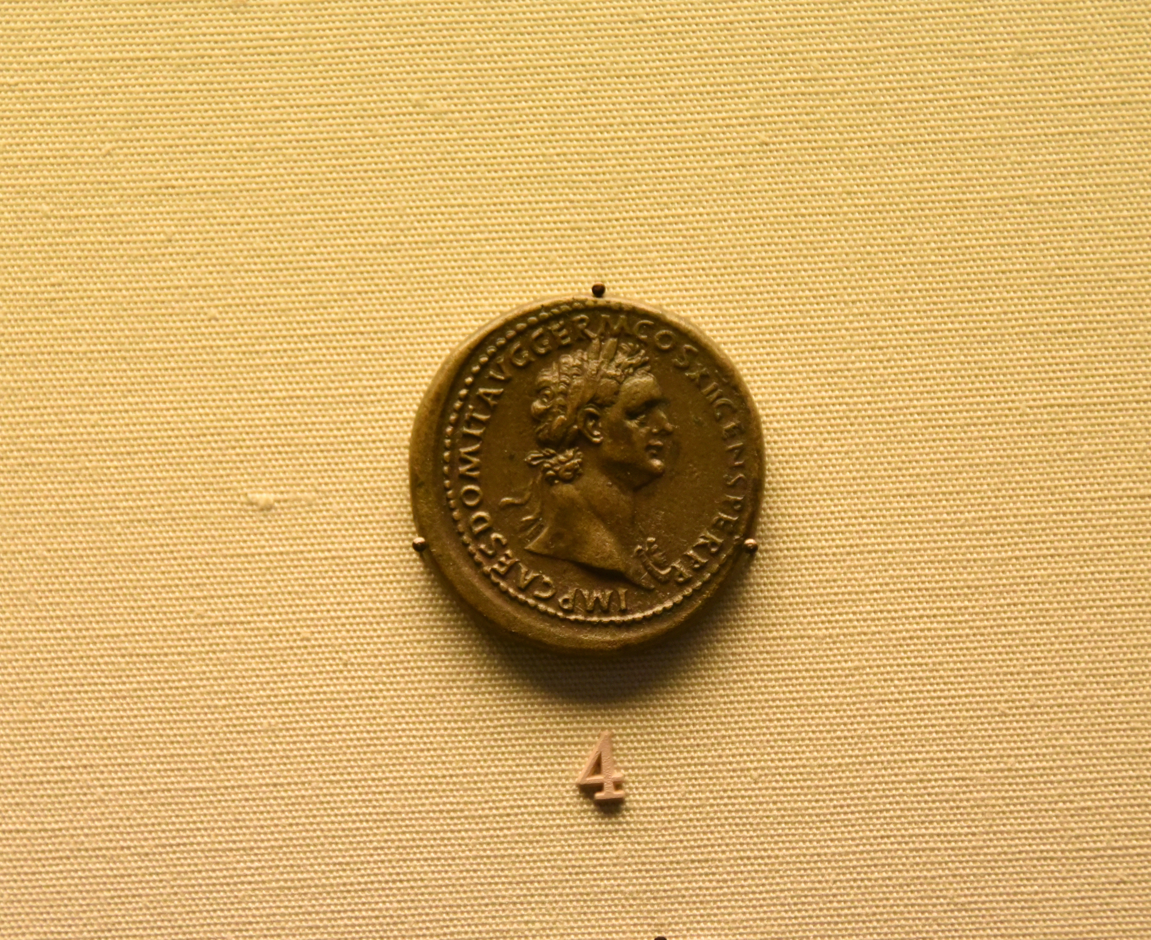 The Roman Emperor Domitian (reigned 81-96 CE) struck an extensive series of coins celebrating his German military campaign between 85-89 CE. From the Wigan Collection. (The British Museum, London).