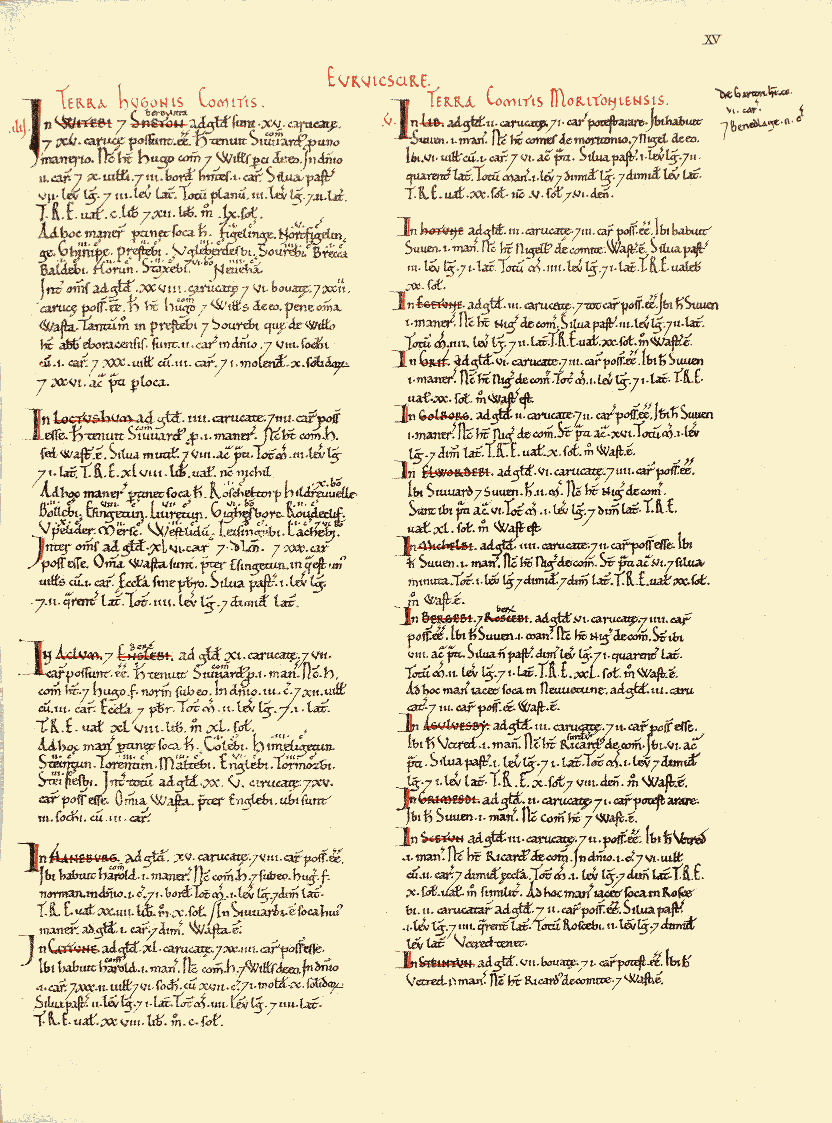 A folio from the Yorkshire section of Domesday Book, 1086-7 CE. (www.opendomesday.org)