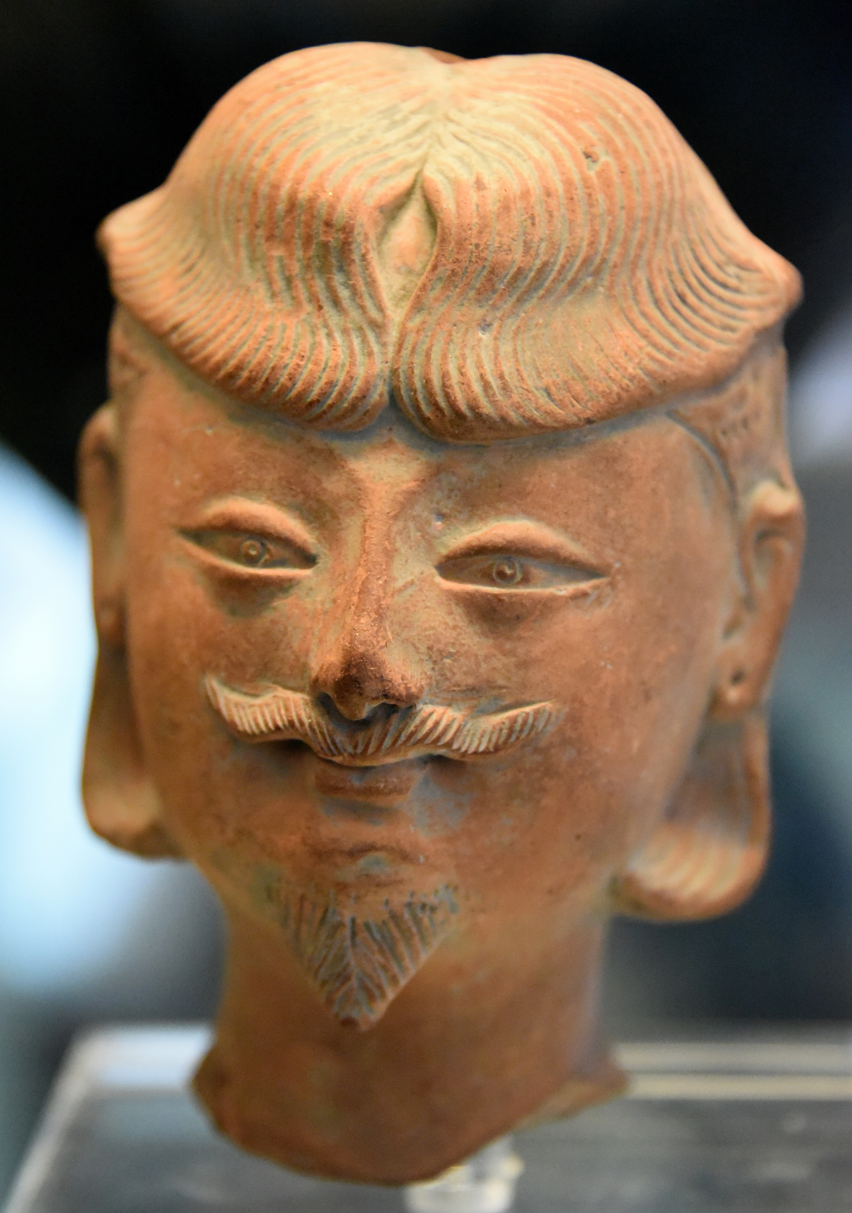The oasis state of Khotan with its capital at Yotkan, south of the Taklamakan desert, was a prosperous and powerful kingdom. Excavations have yielded many terracotta figures and ceramics of a Hellenistic style adopted from Iran. There are virtually no similarities with artifacts from Central China. From Yotkan, capital of the kingdom of Khotan, modern Xingjian province, 2nd to 3rd century CE. (The British Museum, London).