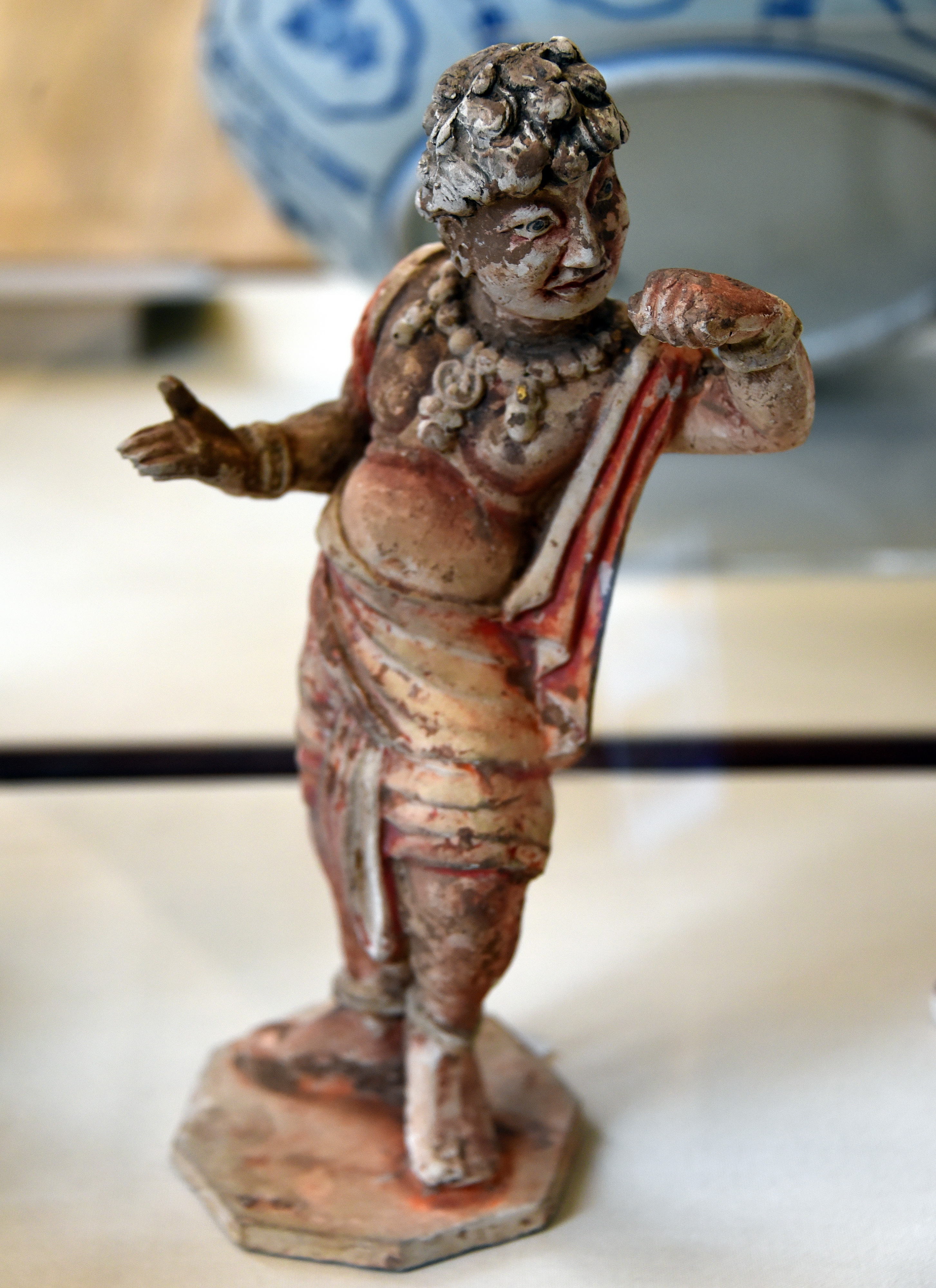 This figure was made of a slipped and brown pigmented earthenware. It represents a male dancer, possibly an African or Indonesian. It was found in a Chinese tomb. Tang Dynasty, 8th century CE. (The British Museum, London).
