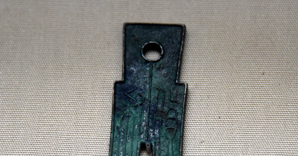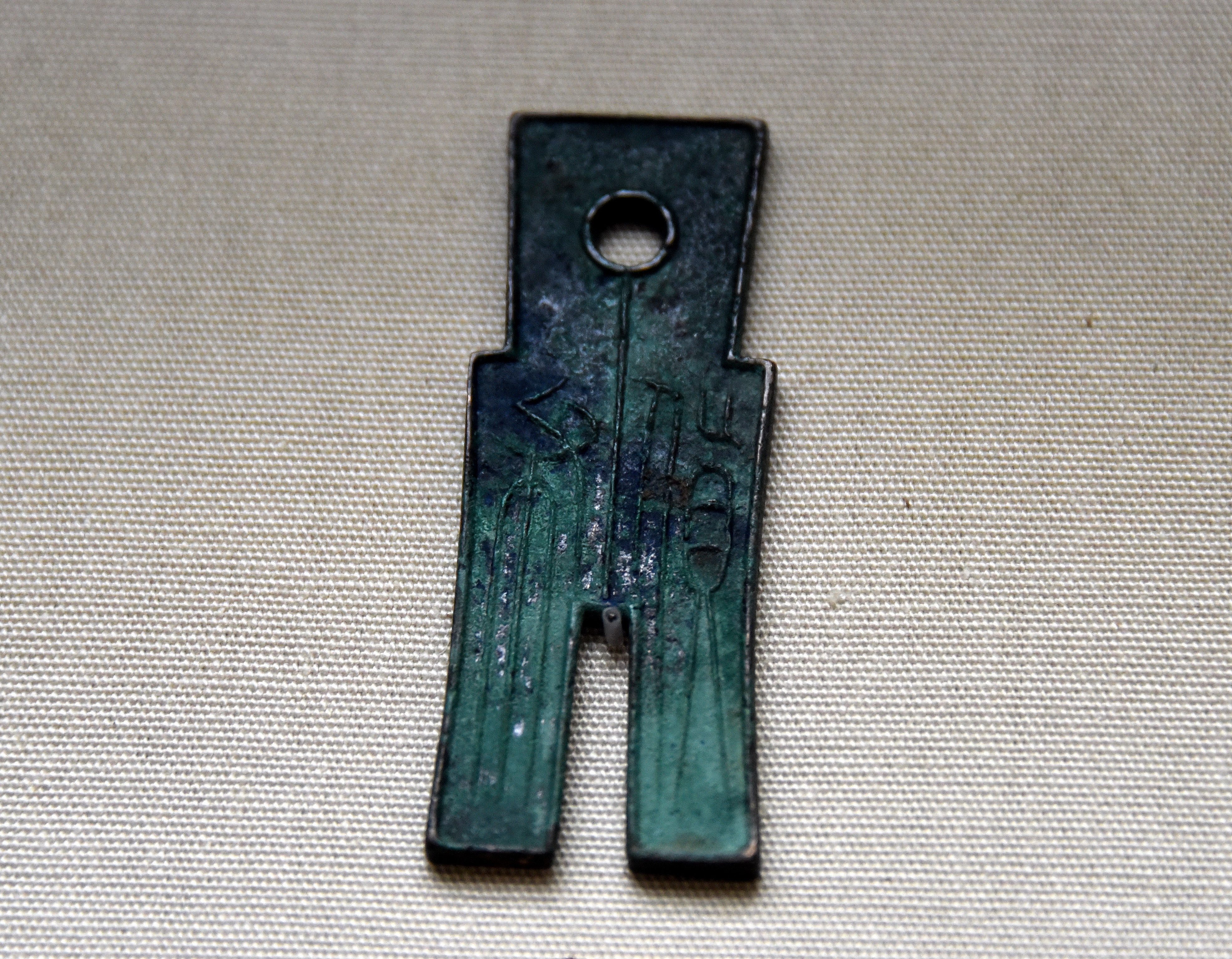 Bronze spade money (worth 25 standard coins) with Chinese inscription, minted in China under the rule of Wang Mang, Xin Dynasty, 9-23 CE.