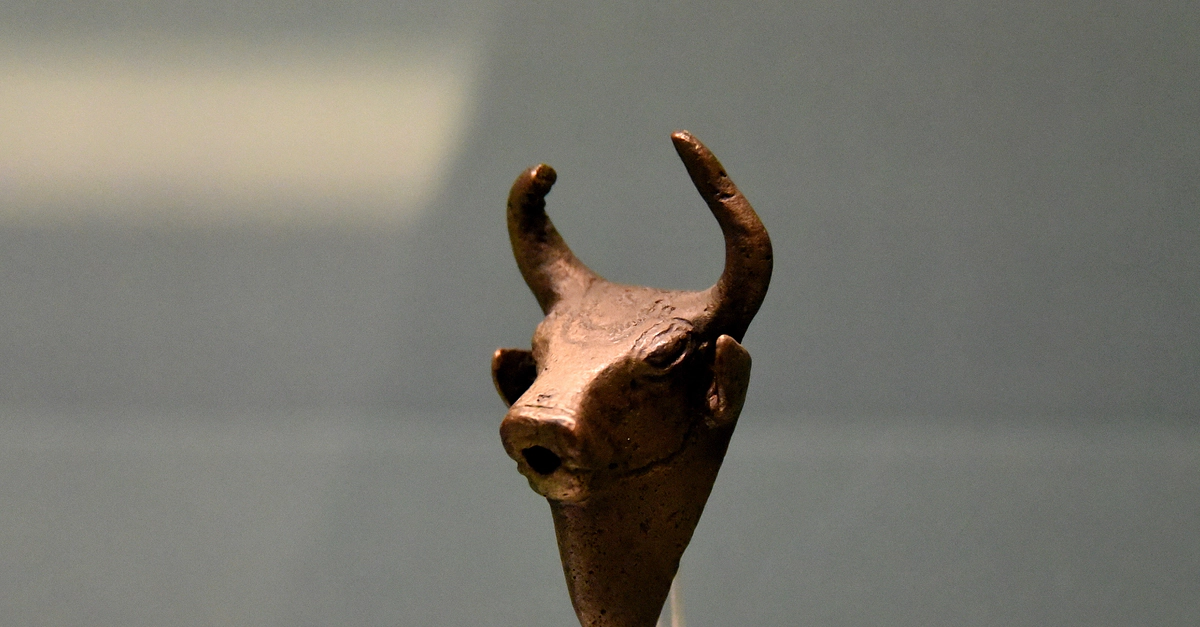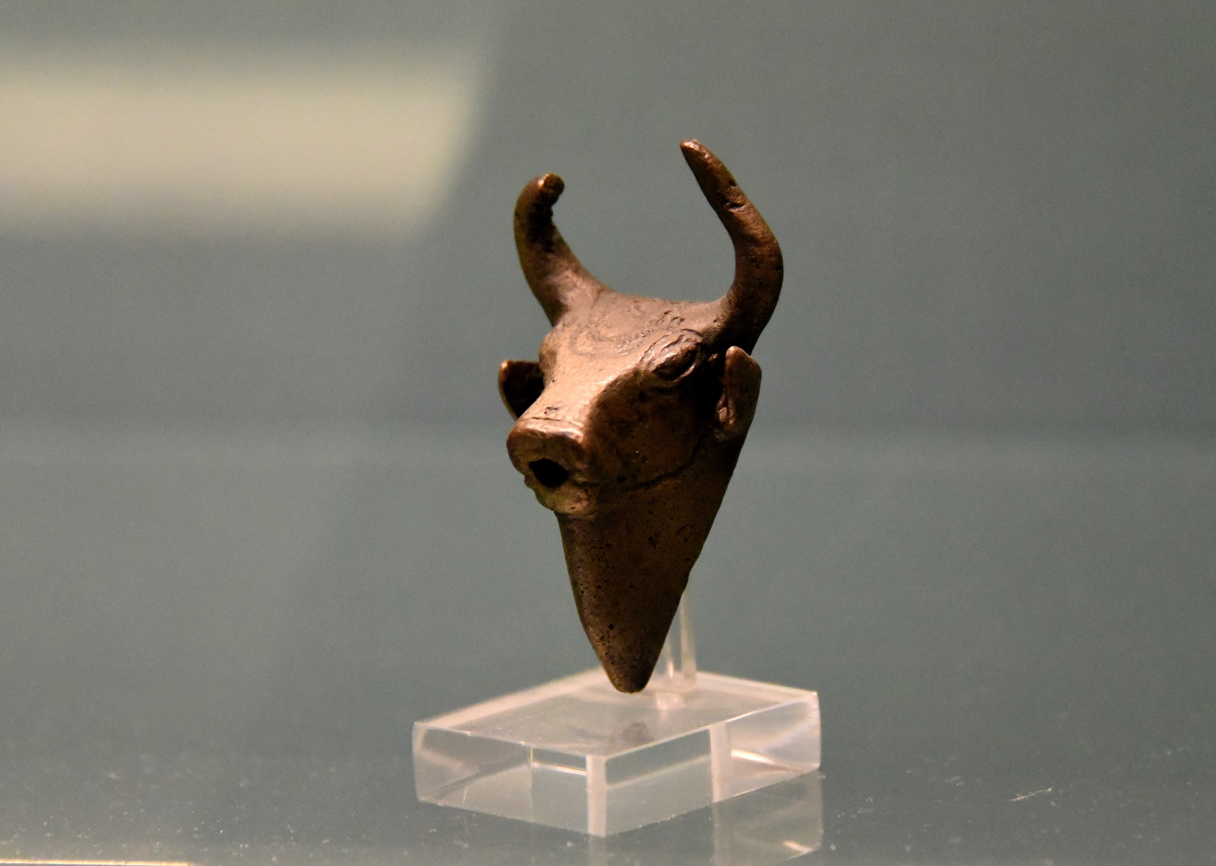 This bronze spout was shaped like a bull's head. The horns are curved and there is an ornamented forelock. From Urmia, north-western Iran. Urartian, 8th to 7th century BCE. (The British Museum, London).