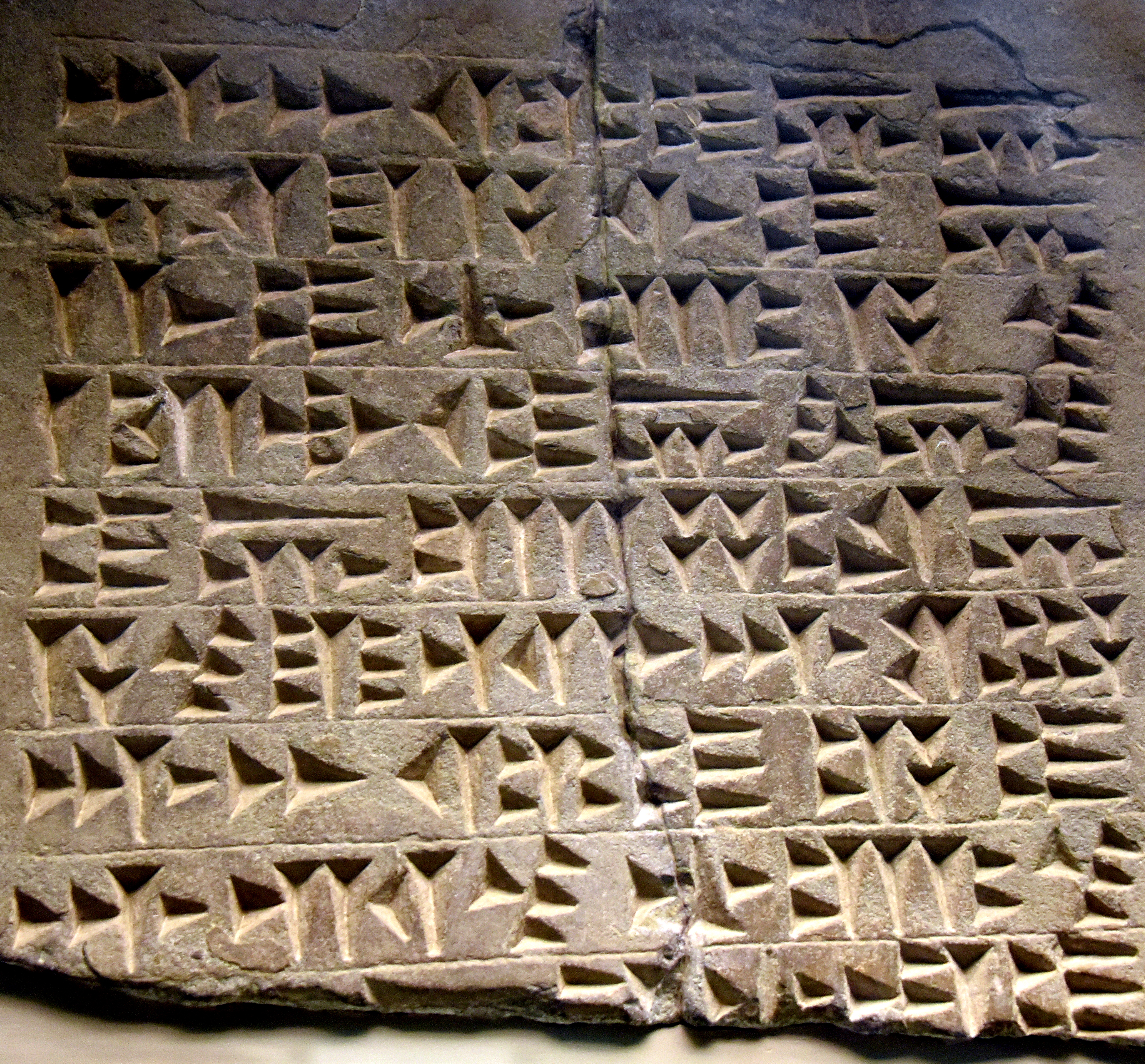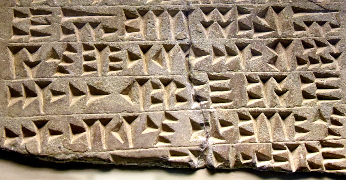 This is a dedication to the god Haldi, the supreme god of the Urartians, from a temple built by Menua, son of Ishpuini, king of Urartu (reigned 810-786 BCE). It is written in Urartian cuneiform writing. From Toprakkale or Van, Eastern Anatolia, in modern-day Turkey. Urartian, c. 700 BCE. (The British Museum, London).