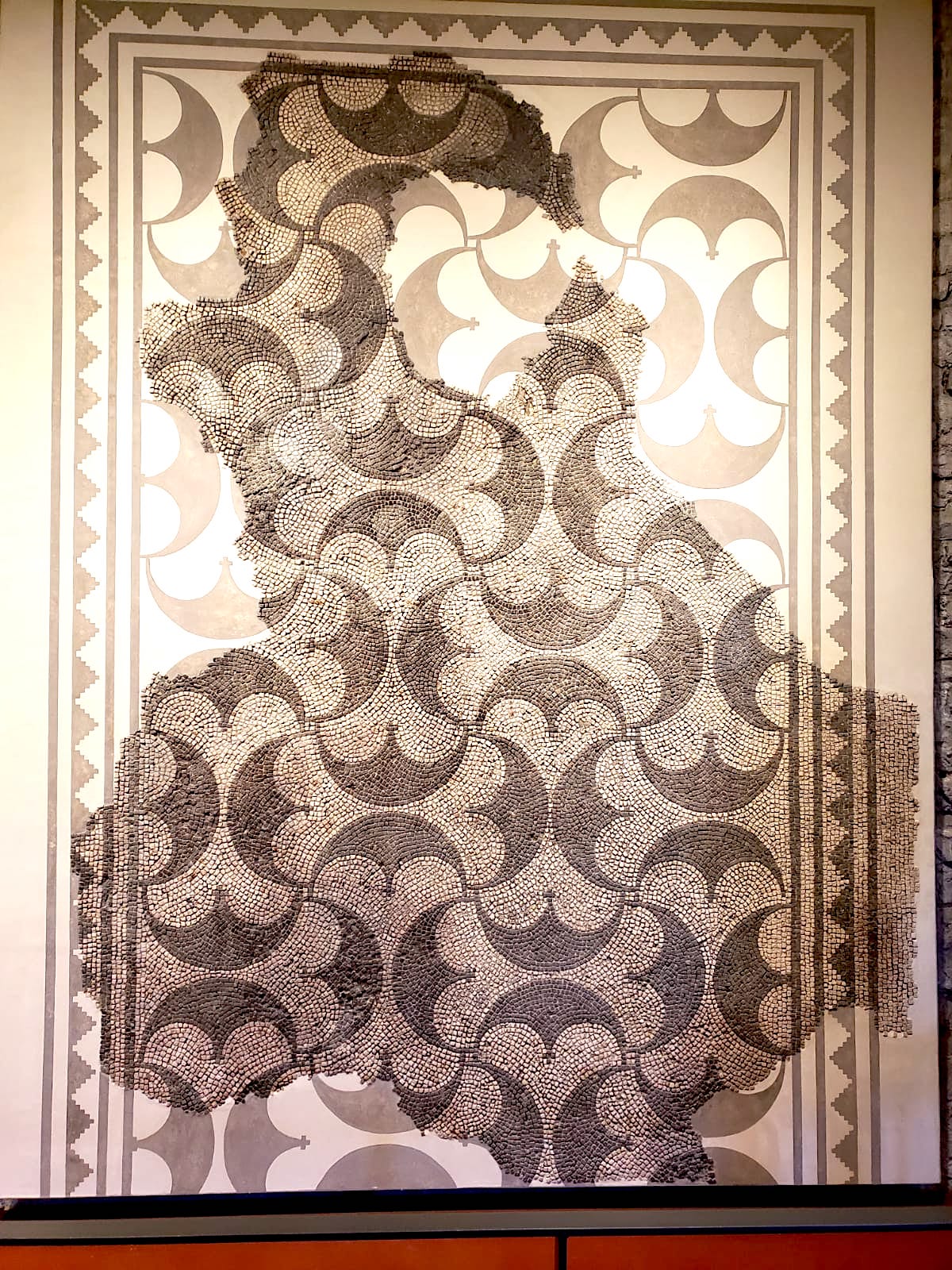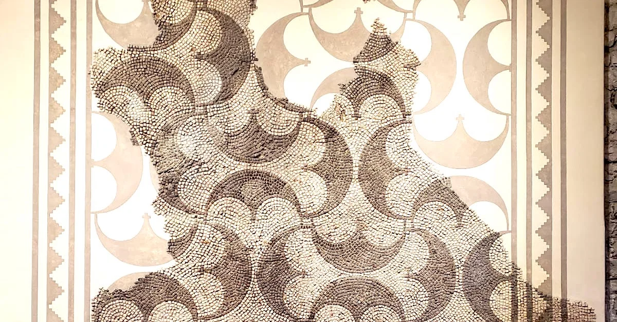 The fragments of this urban courtyard mosaic come from Augusta Raurica, which is located in modern Switzerland. It dates from c. 200 CE, and it was made by the ancient Romans.