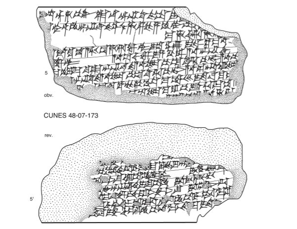 An illustration of a tablet, discovered in 2015 CE, describing a portion of the Gilgamesh epic. CUNES 48-07-173. (Illustration by Prof. Andrew George. Used with permission)