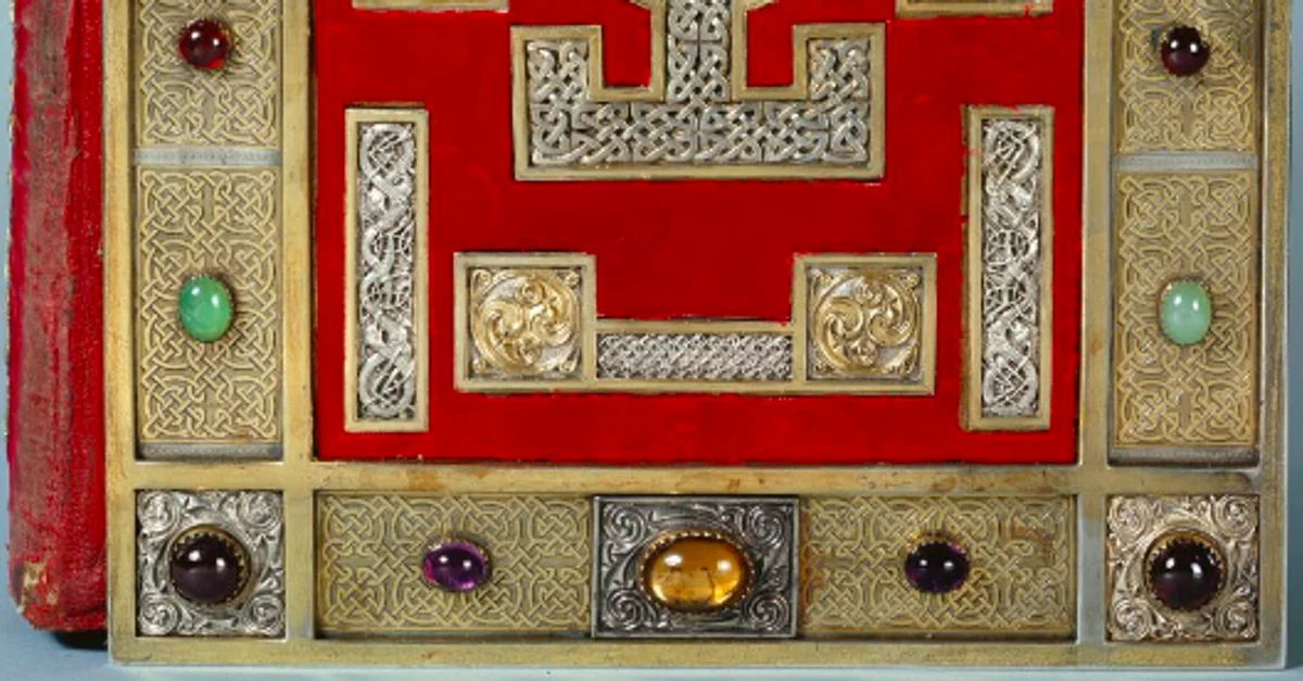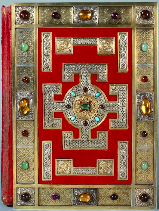 A cover of the Lindisfarne Gospels, produced in the Kingdom of Northumbria 8-10th century CE. (British Library, London)