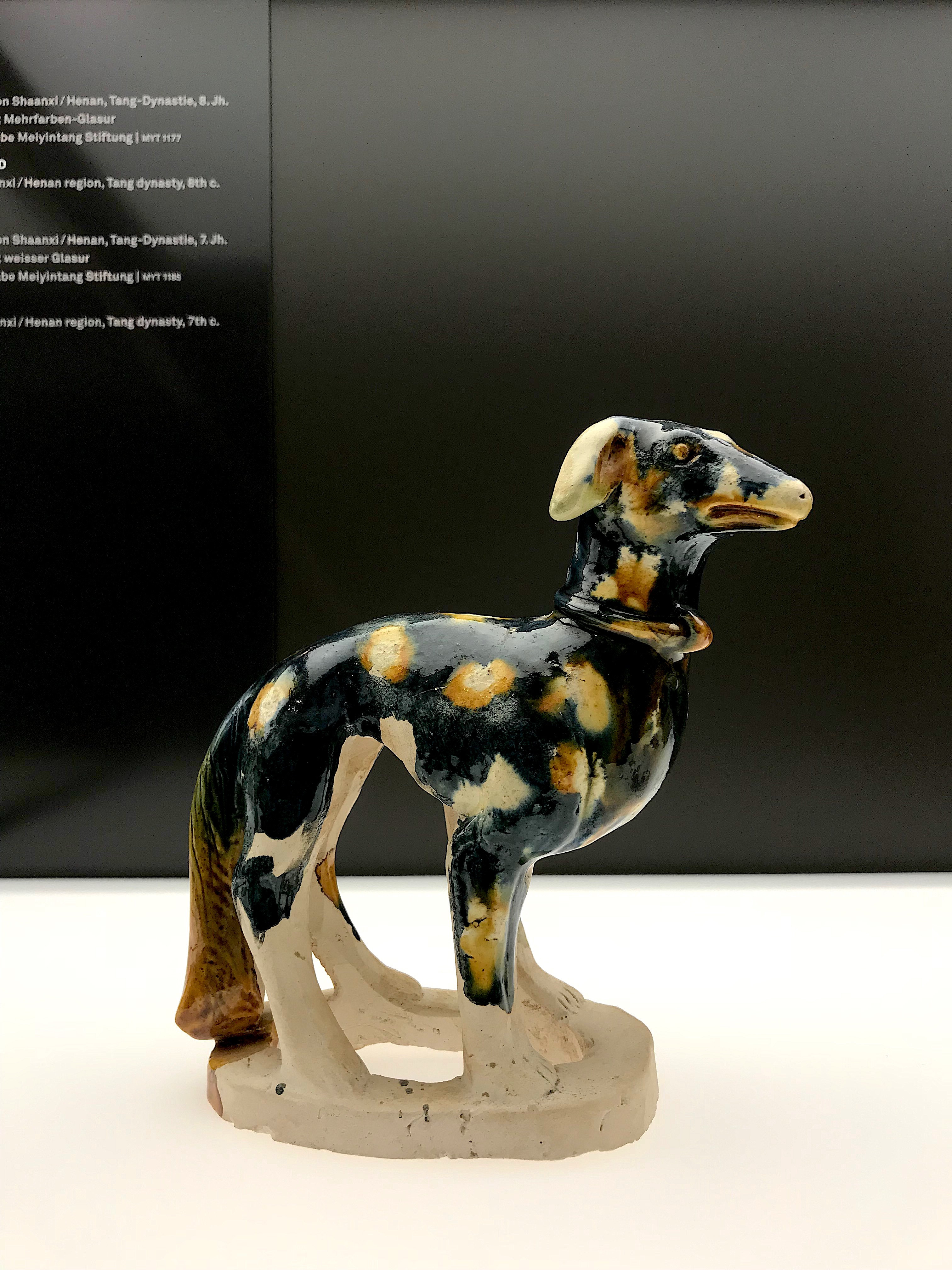 This figure of a greyhound was made in the area between China's Shaanxi and Henan provinces during the Tang Dynasty, around c. 750 CE. (Museum Rietberg, Zürich).