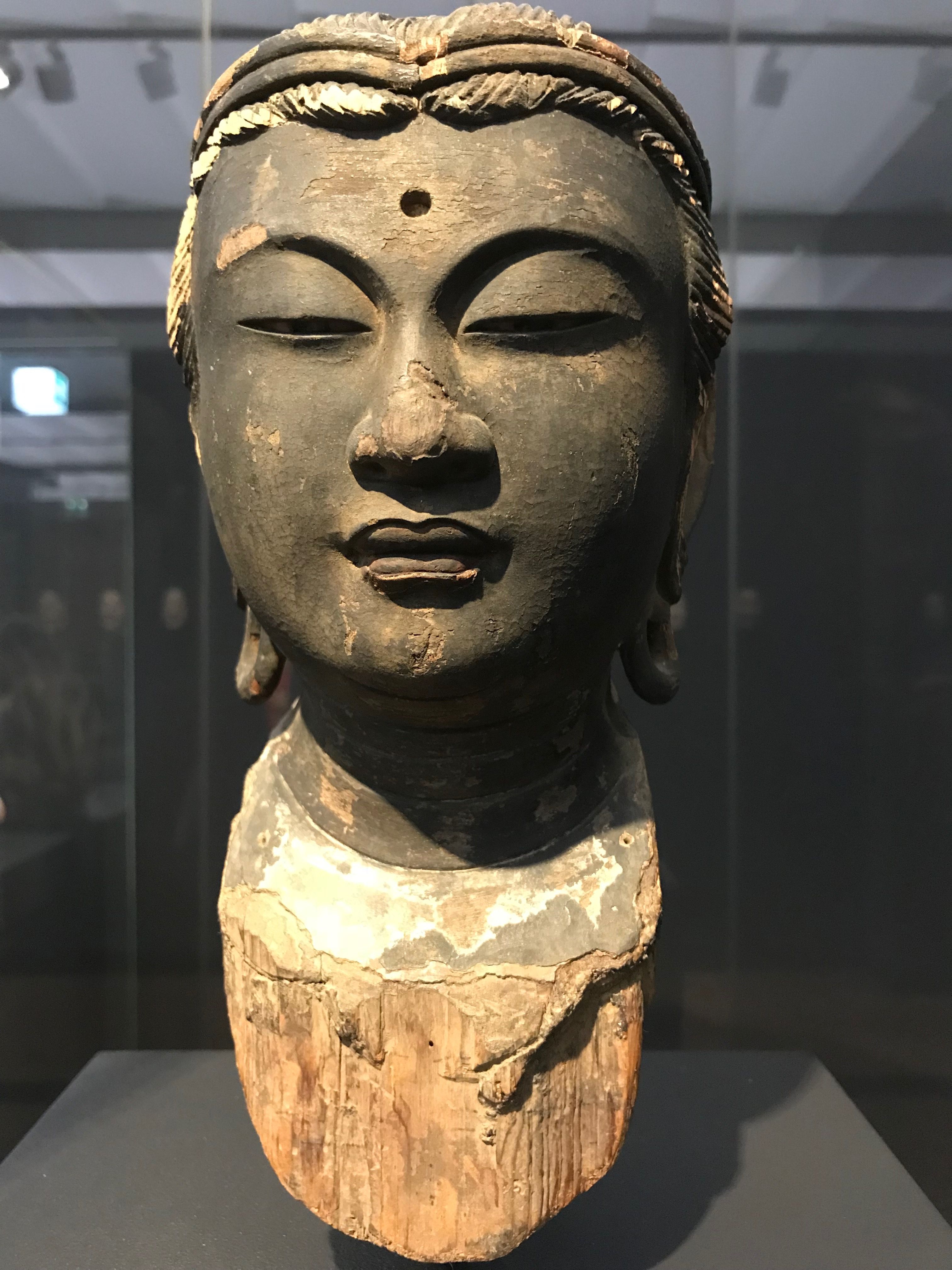 This fragment of a wooden bodhisattva head comes from Japan and was made during the Kamakura Period during the 13th century CE. (Museum Rietberg, Zürich).