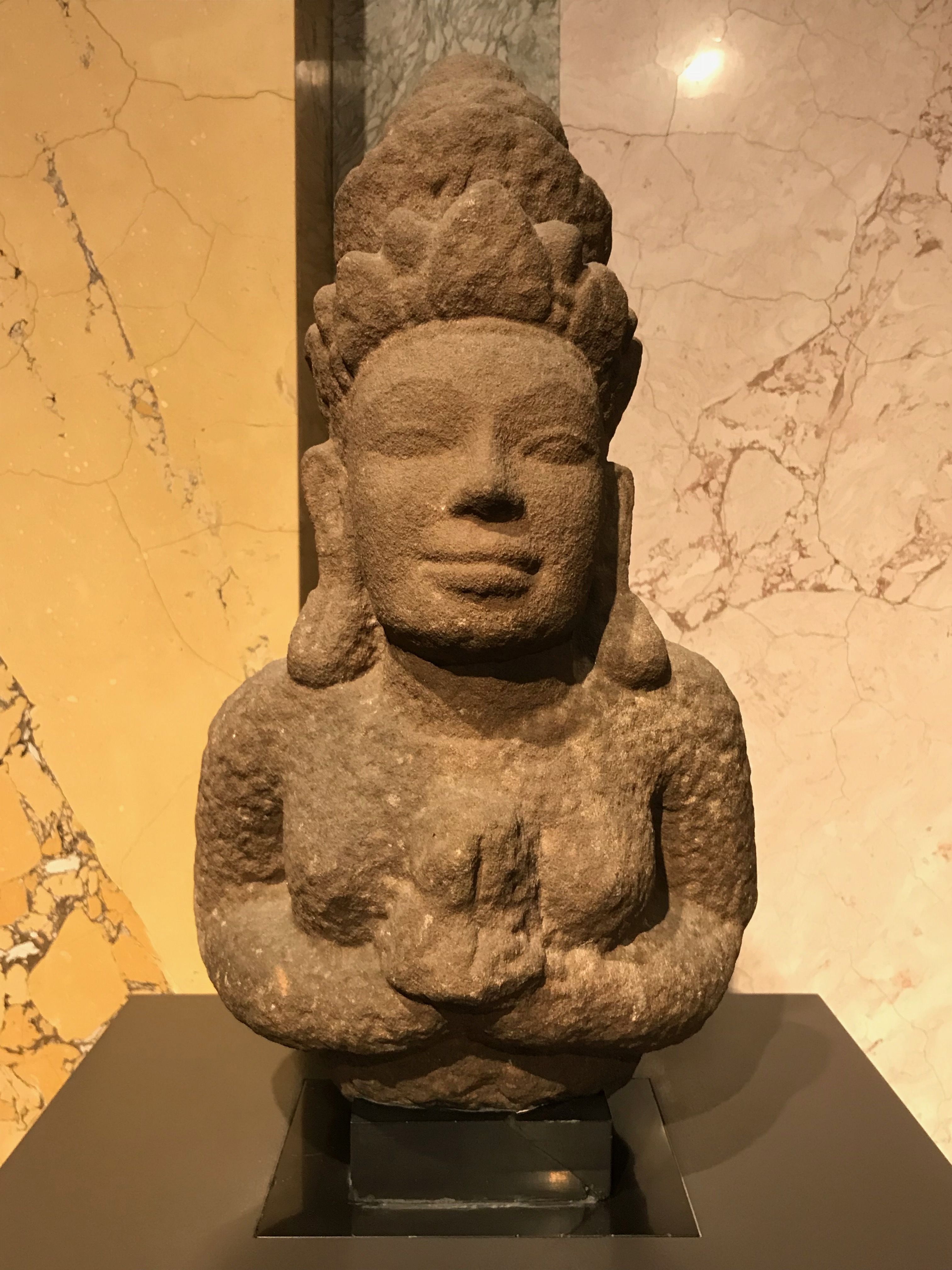 This lovely apsara comes from the city of My Son in what now present-day Vietnam. It was created while the region was ruled by the kingdom of Champa. It is made of sandstone and dates from the 10th century CE. (Museum Rietberg, Zürich).