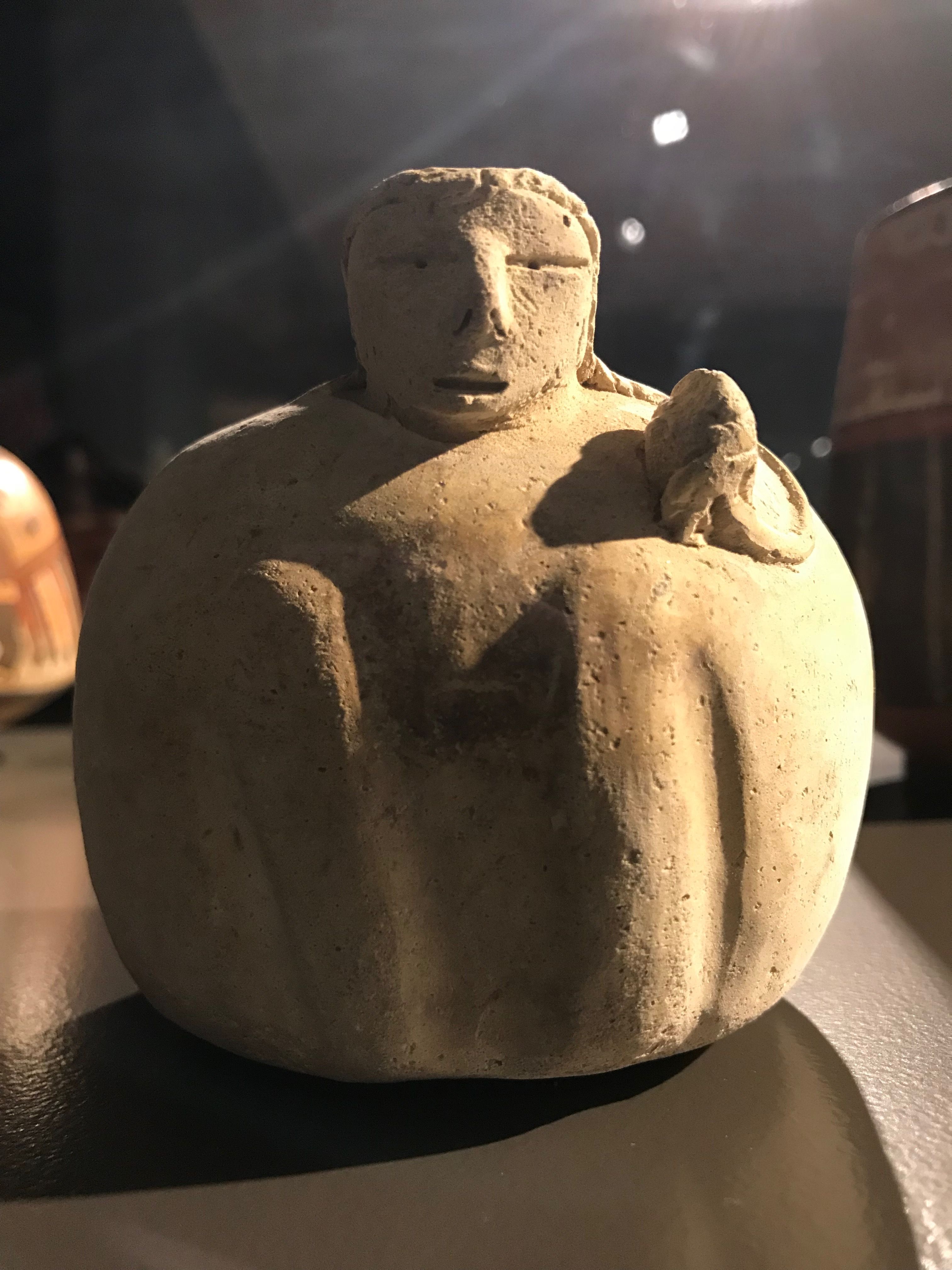 This ceremonial vessel made of terracotta clay was created by the Topará Culture, which occupied and coexisted with the Paracas Culture in Paracas Peninsula and in the nearby Ica Valley in what is present-day Peru. The exchange of artistic styles and cultural between these two cultures profoundly affected the subsequent development and genesis of the Nazca civilization. Indigenous artisans created this artifact between the 2nd century BCE to the 1st century CE. (Museum Rietberg, Zürich).