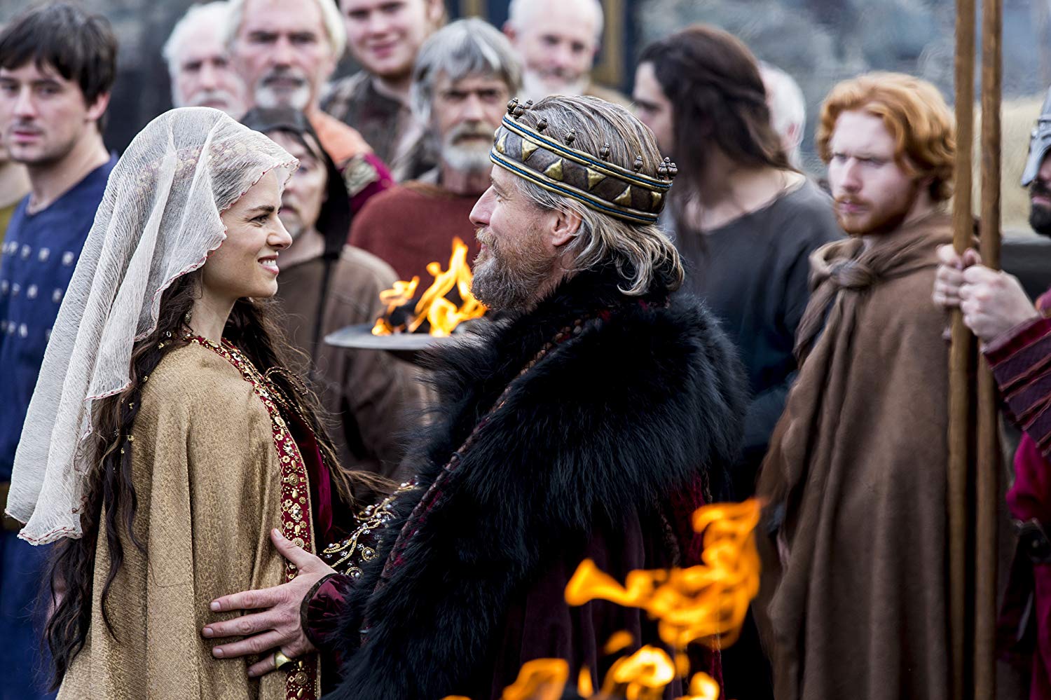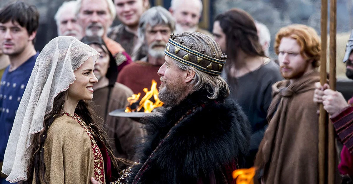 Amy Bailey as Kwenthryth and Linus Roach as King Ecbert of Wessex in the TV series Vikings. Photo by HISTORY - © 2013 The HISTORY Channel