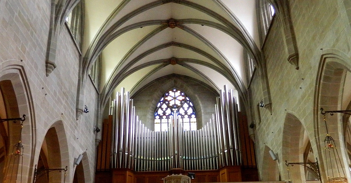 The interior of Grossmünster (“large cathedral” in German), a Romanesque ex-cathedral situated in the heart of Zürich, Switzerland, which was built over the course of the 11th and 13th centuries CE.