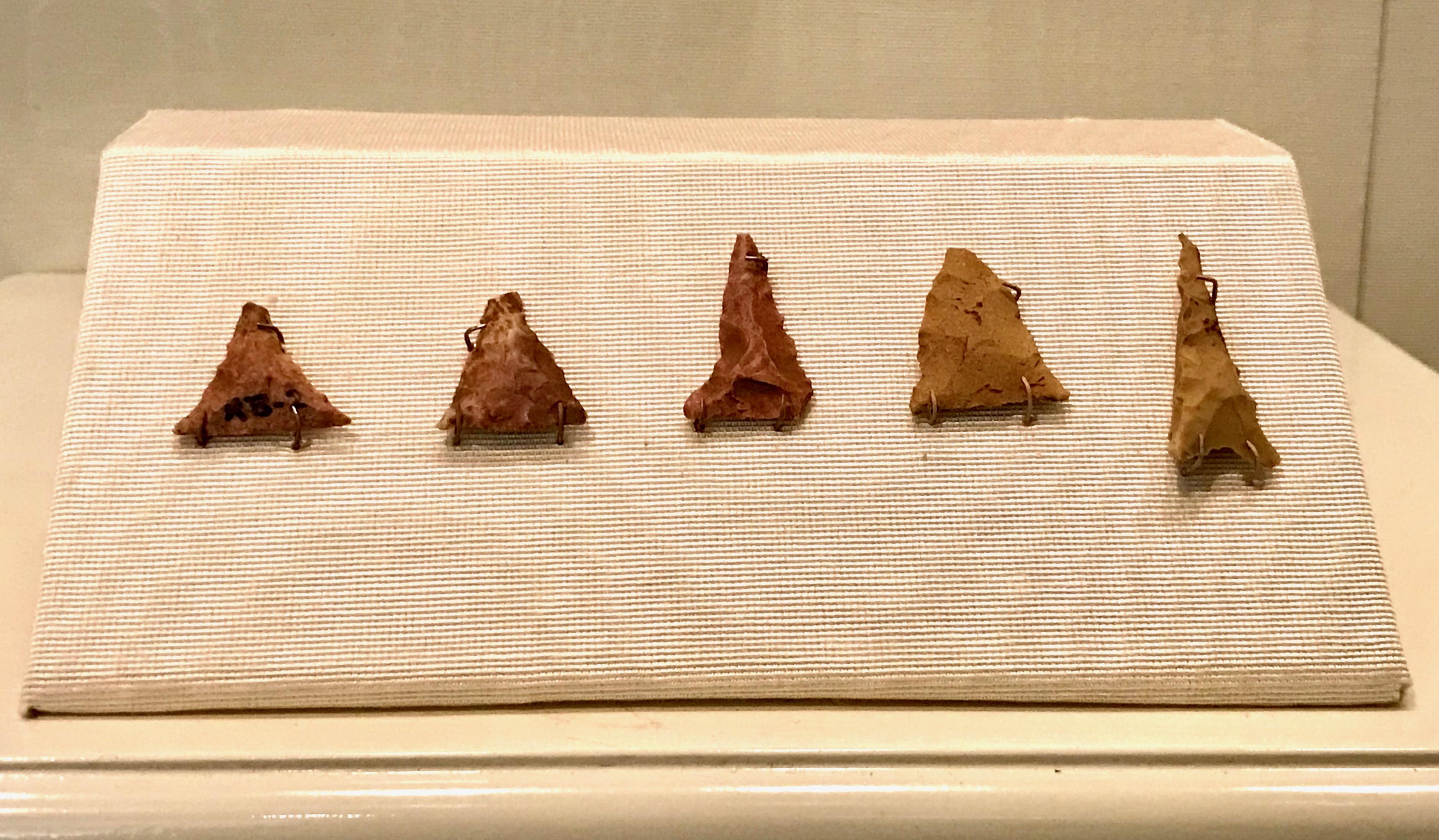 These stone projectile points date from c. 900-1540 CE and were made by members of the Mississippian culture, which flourished in what is now the United States from c. 900-1500 CE. This set of artifacts were curiously uncovered by the U.S. President Jimmy Carter in the U.S. state of Georgia. As a young boy, Jimmy Carter would roam the fields and streams of his family's farm in rural Georgia in search of Native American stone tools. Over the years, he became quite an avid amateur archaeologist. Even during his years in the White House (1977-1981 CE), President Carter and his wife, Rosalynn, would return to walk the Georgia fields with their family in search of arrowheads and evidence of the original indigenous inhabitants. (Jimmy Carter Presidential Library and Museum, Atlanta, Georgia.)