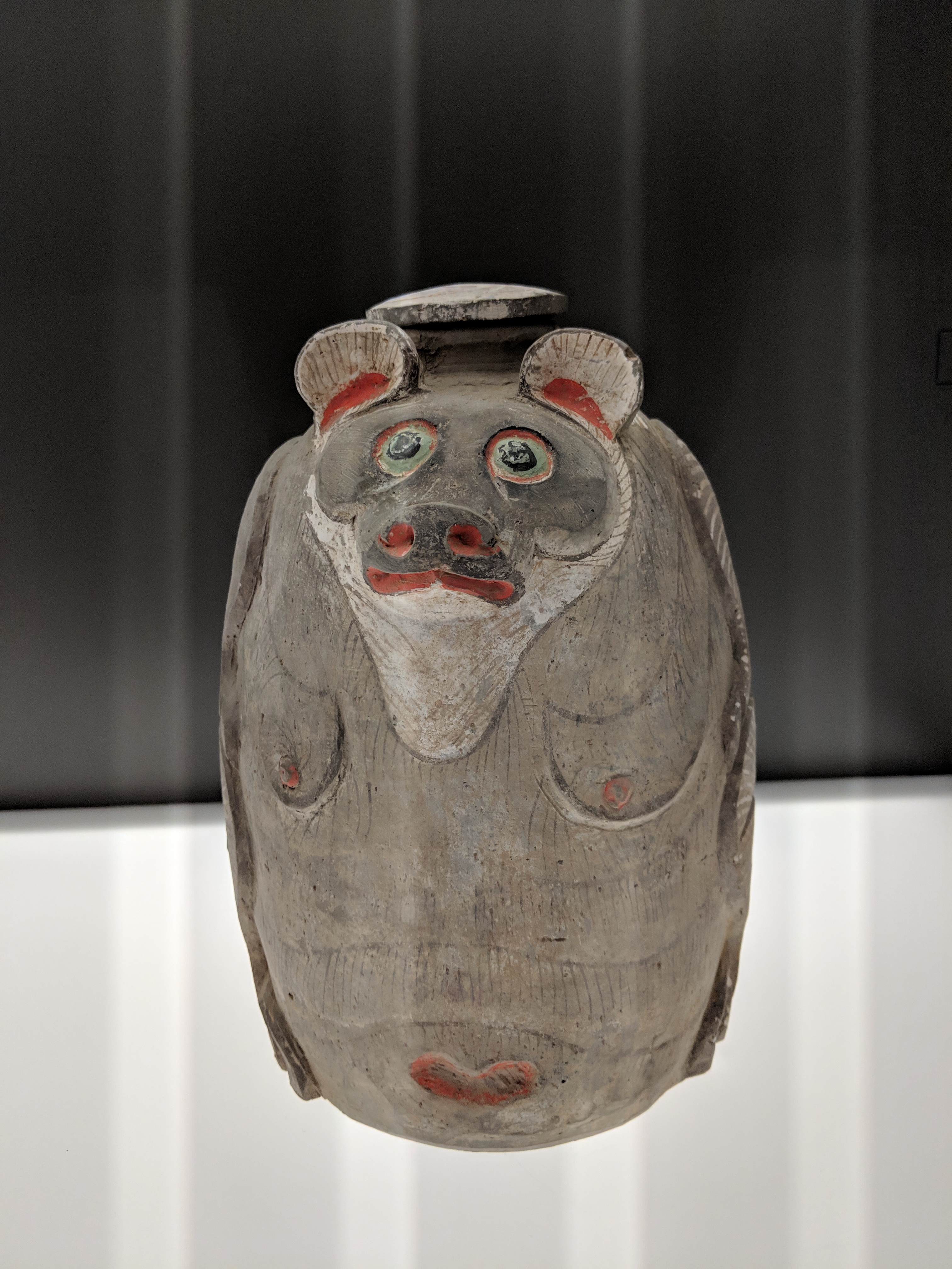 A jar in the shape of a bear, Shaanxi / Henan Region, China. Western Han Dynasty, 2nd/1st century BCE. Exhibited in Museum Rietberg, Zurich, Switzerland.