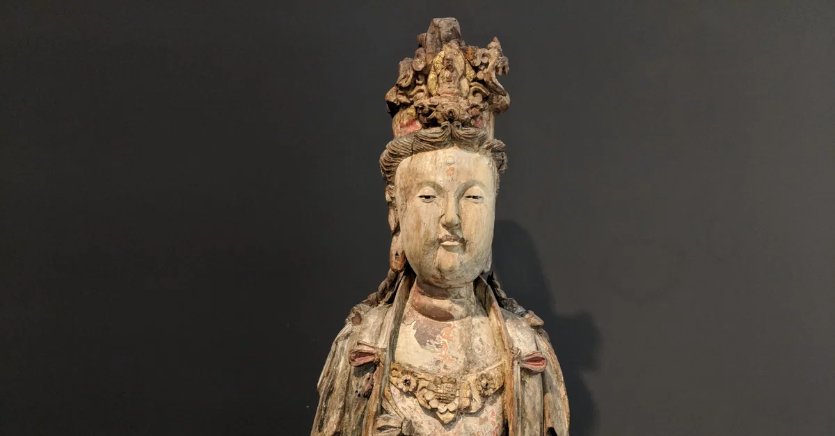 Guanyin, the Bodhisattva of Compassion. Song Dynasty (960-1279 CE), China. Wooden, painted and gilded. Exhibited at Museum Rietberg, Zurich, Switzerland.