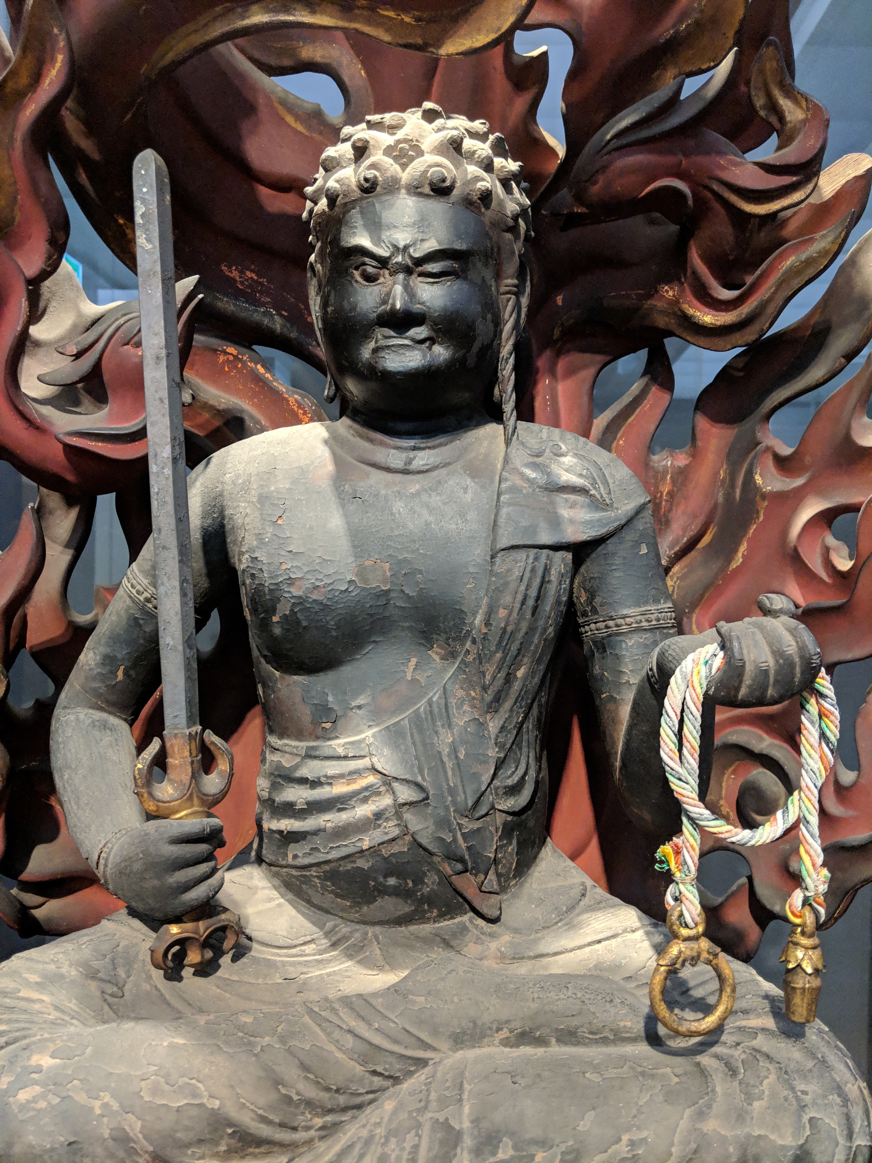 Fudo Myoo, King of Mystic Knowledge, the Unbreakable, removes all spiritual fog on the way to salvation. He captures evil influences and sunders ignorance with his sword. Japan, Fujiwara Period, end of the 12th century CE.