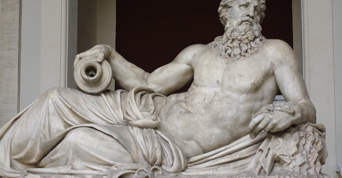 A Roman marble statue depicting the River god Arno (the river which runs through Florence). First half of the 2nd century CE, although the head is a Renaissance replacement. (Vatican Museums, Rome)