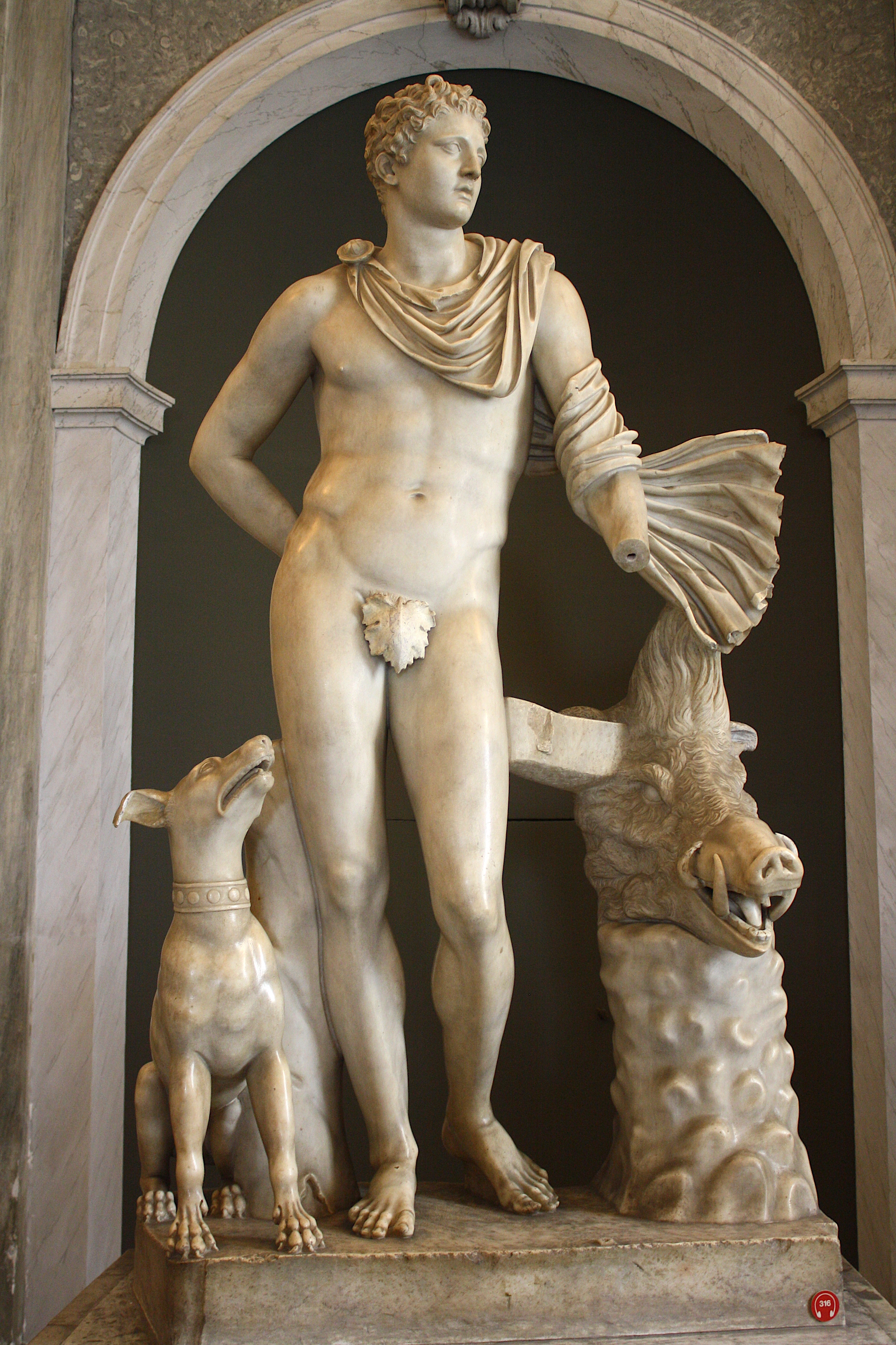 A marble statue of the Greek hero Meleager who slew the Calydonian boar. Found in Rome. 2nd century CE Roman copy of a 4th century BCE Greek original. (Vatican Museums, Rome)