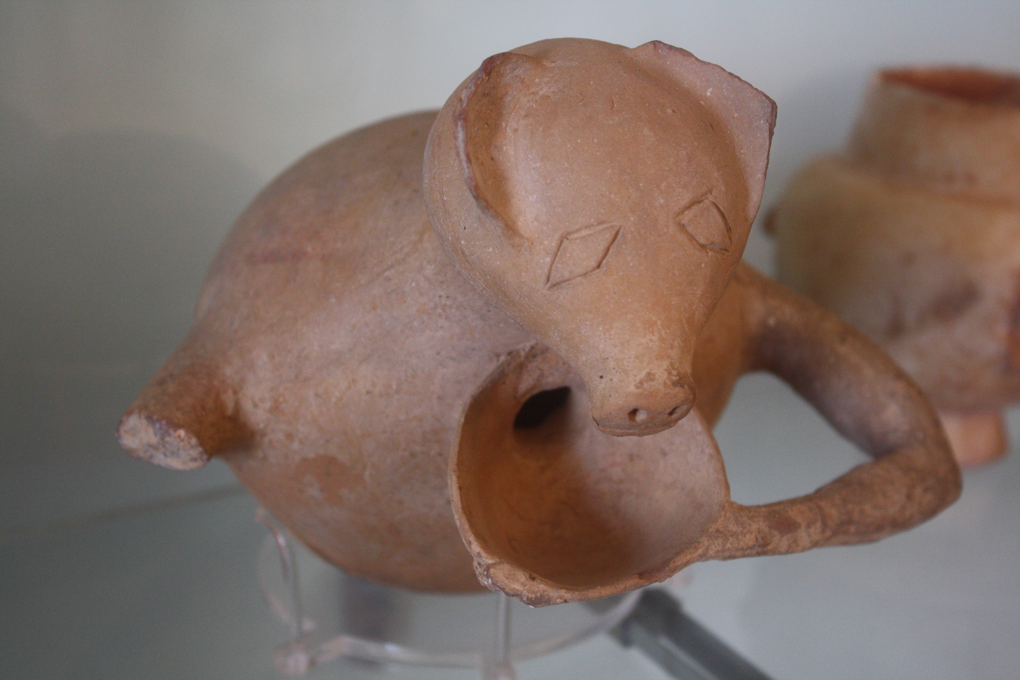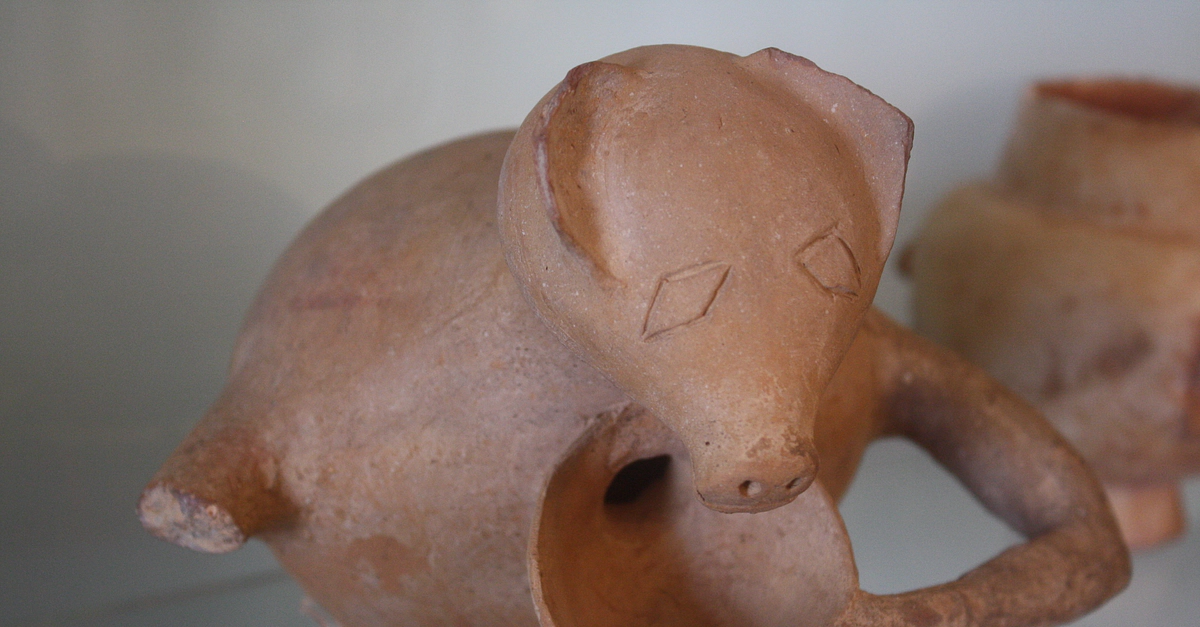An early-Cycladic vase in the form of a piglet. 2800-2300 BCE. (Archaeological Museum of Naxos, Greece)