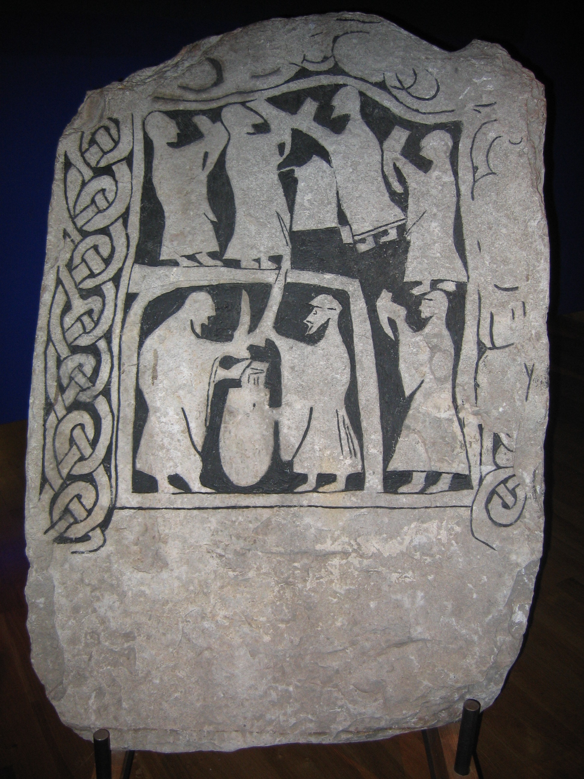 A stone from Gotland depicting a Viking drinking scene. (Swedish Museum of National Antiquities, Stockholm)