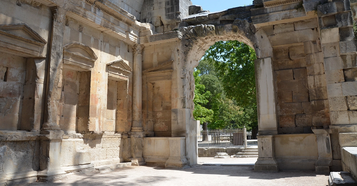 The so-called Temple of Diana, part of an Augusteum, modern-day Nîmes, France. The temple was built in the 1st century CE around a Nymphaeum and dedicated to Augustus.