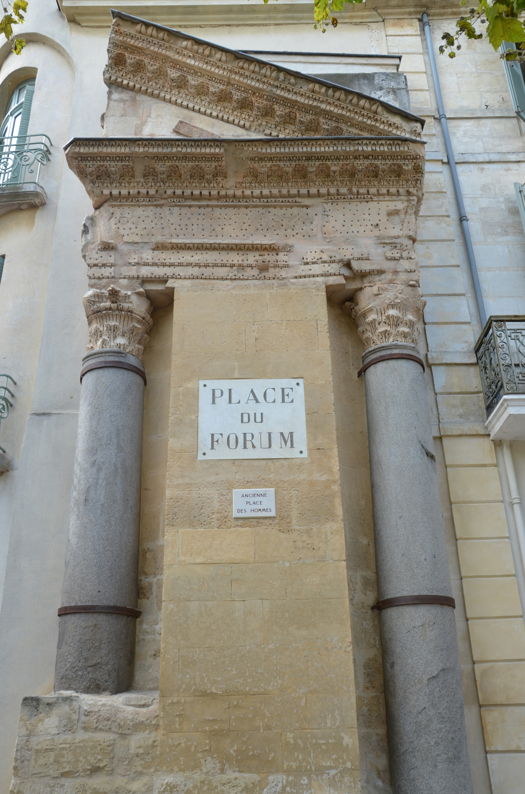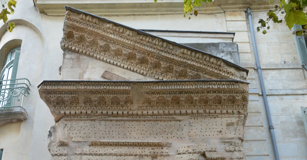 Vestiges of the facade of a second century CE temple at the Roman Forum, Arles.