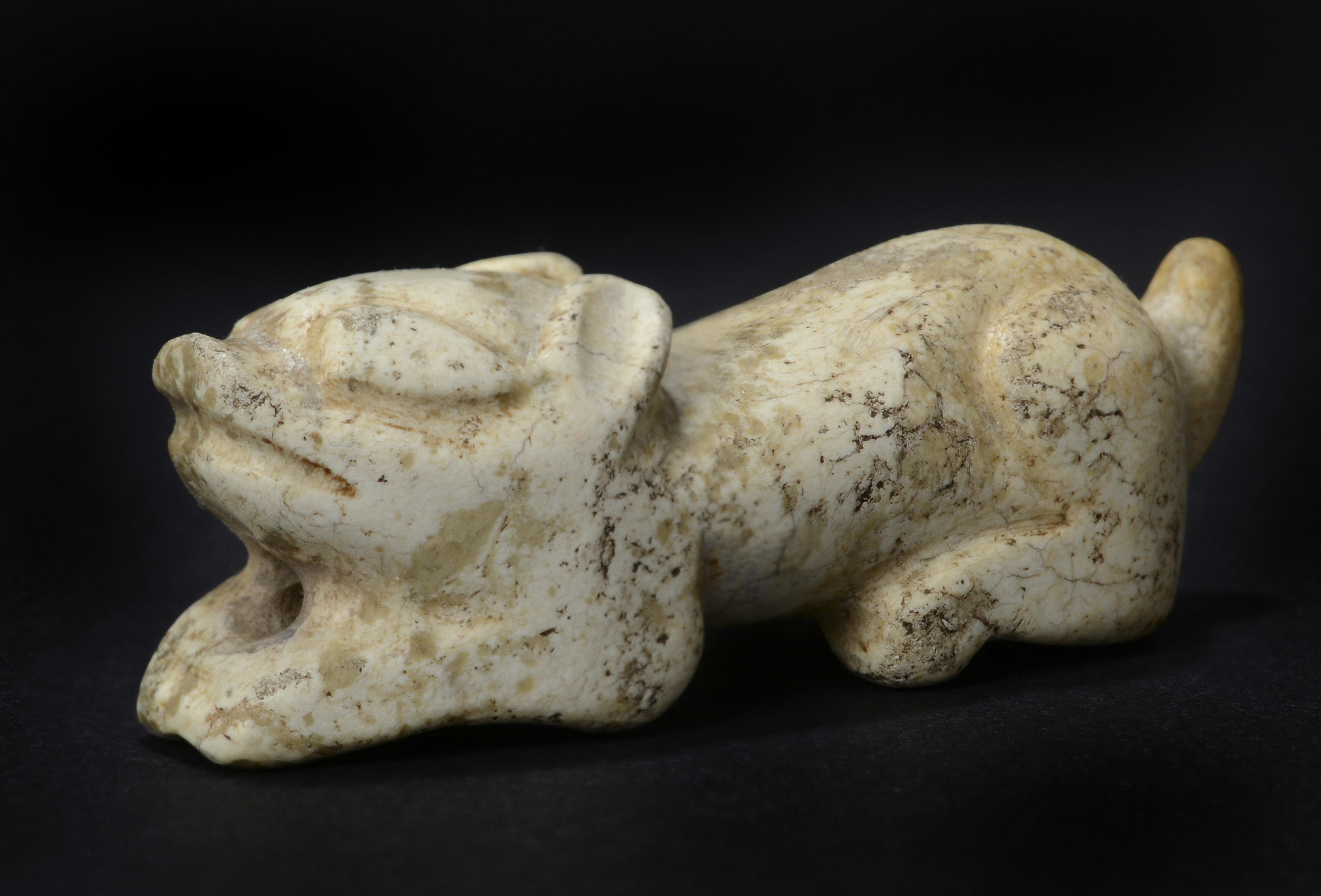 Dog amulet measuring 63.1 x 19.9 x 20.8 mm (2.4 x 0.78 x 0.81 inches), possibly from the period of the Liangzhu Culture in China (3400-2250 BCE).