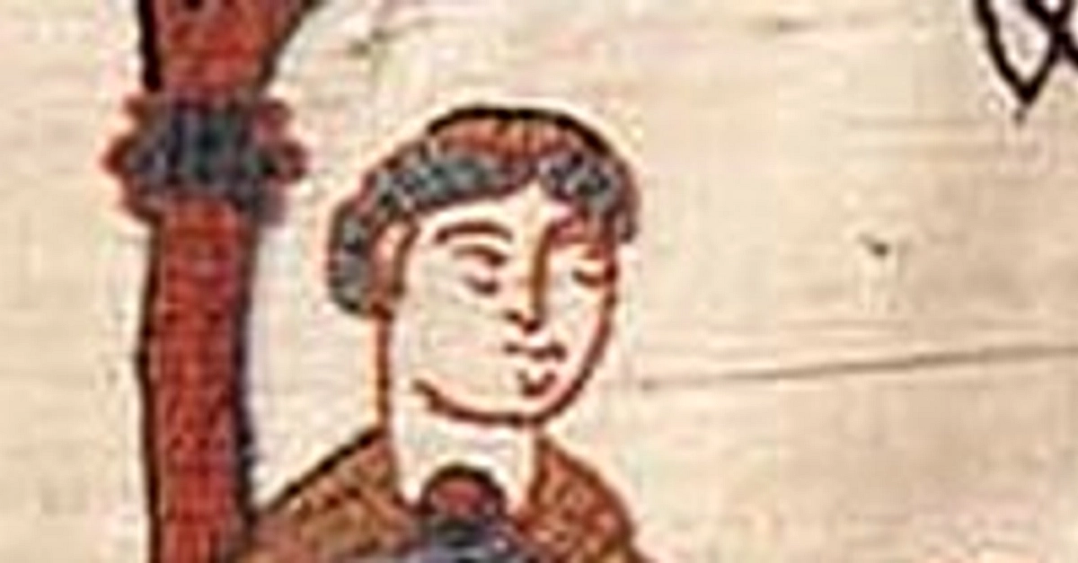 A detail of the 11th century CE Bayeux Tapestry showing Bishop Odo of Bayeux, likely the patron of the artwork. (Centre Guillaume le Conquérant, Bayeux, France)