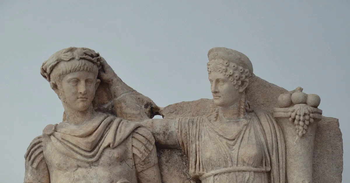 Relief from the Sebasteion depicting Nero and Agrippina on display in the Aphrodisias Museum. Agrippina crowns her young son Nero with a laurel wreath. The scene refers to Nero’s accession as emperor in 54 CE.