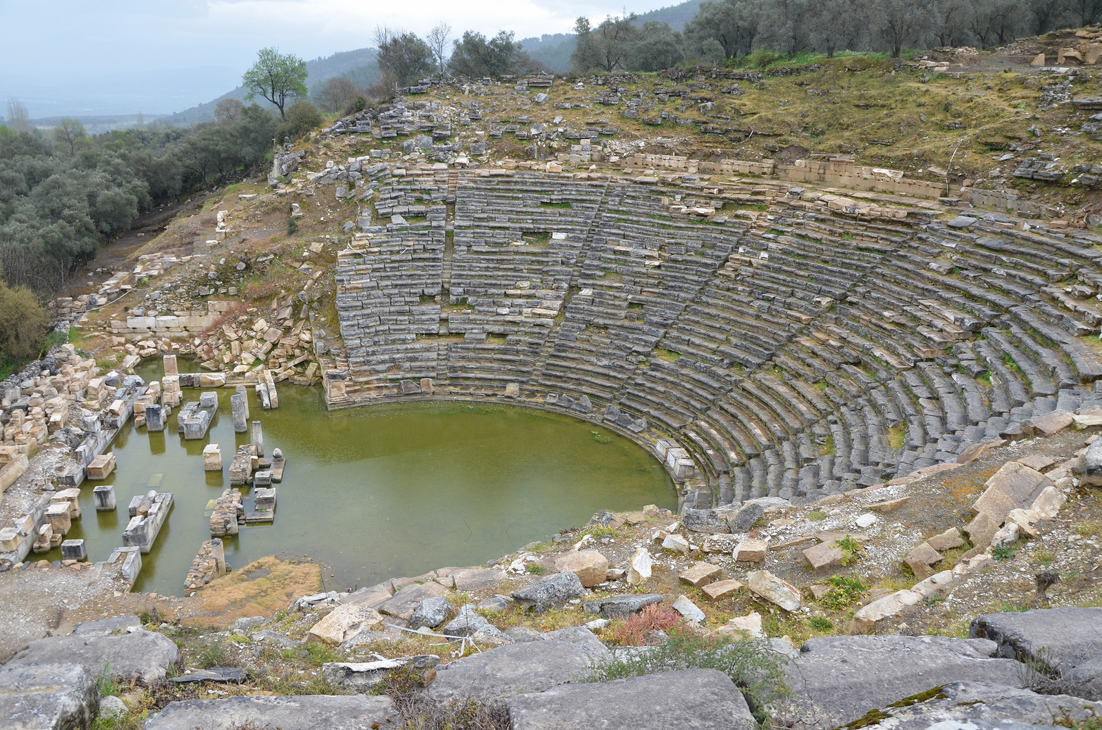 The theatre at Stratonicea, erected in the Hellenistic period in the north slope of the south hill, its capacity was approximately 10,000 spectators.