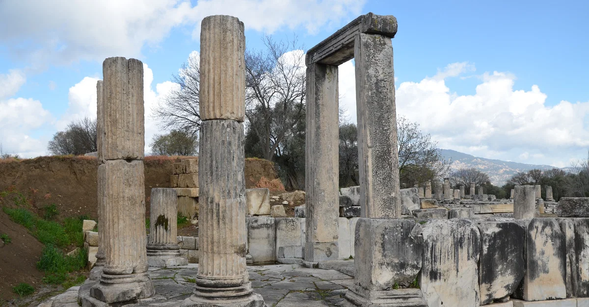 The propylaea at Lagina with a semicircular colonnade at the front.