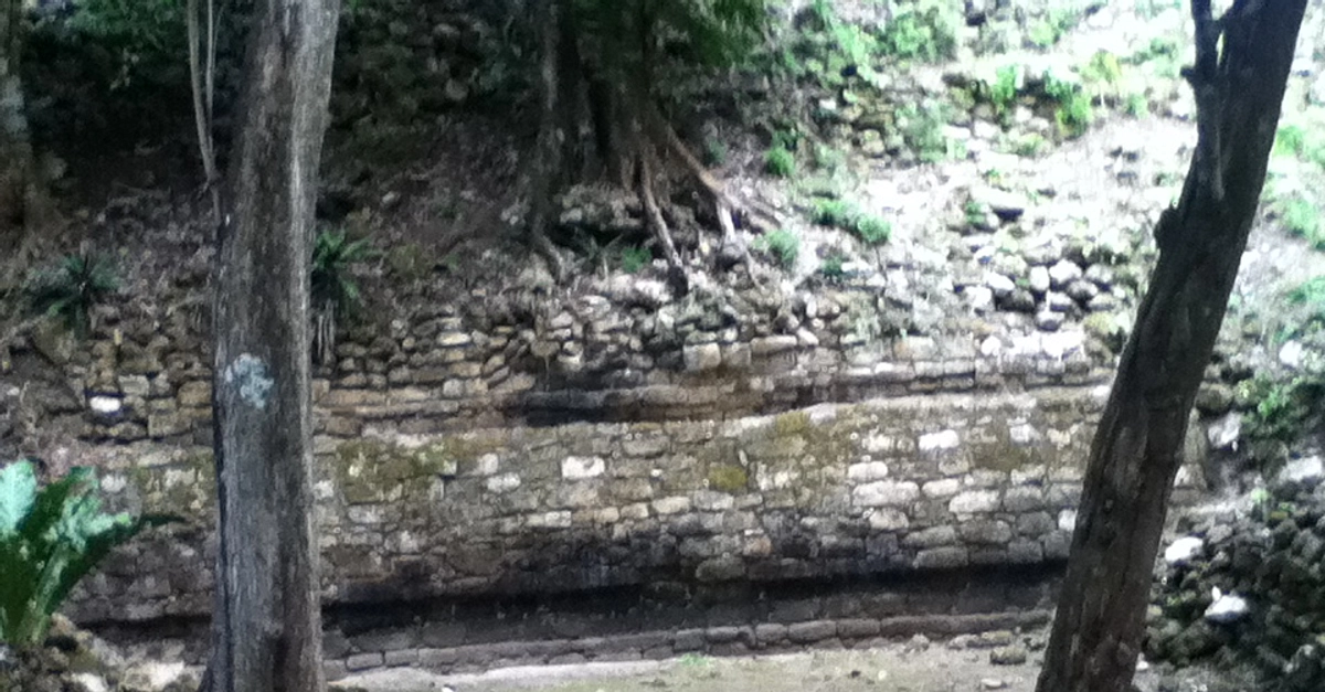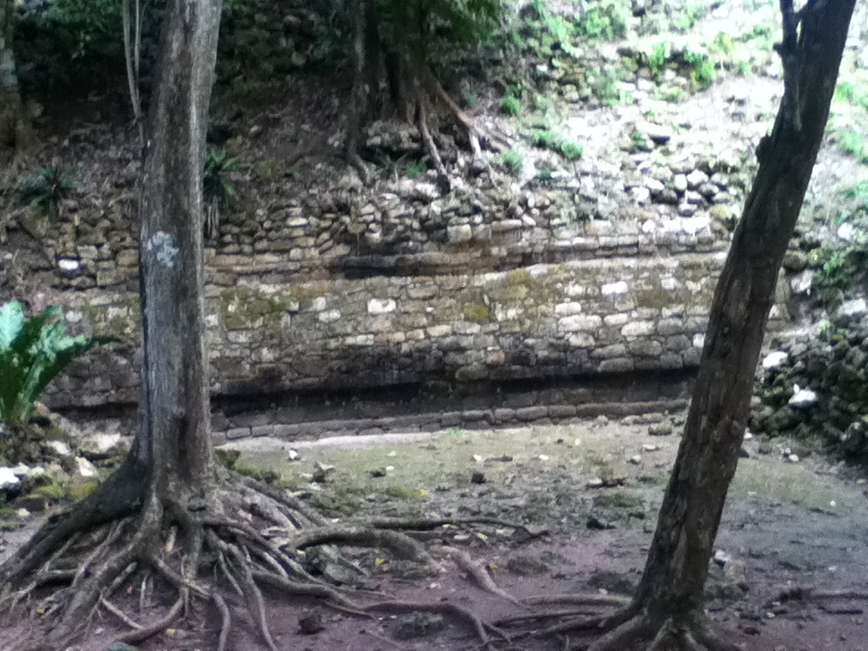 The ruins of the ancient market place and residential area in the Great Plaza of the Maya site of Chacchoben, c. 700 CE.