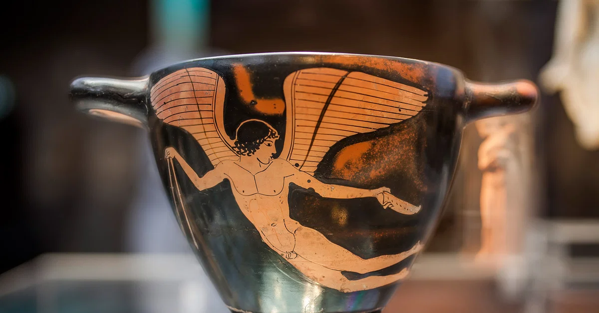 Eros was the Greek god of love, or more precisely, passionate and physical desire. Without warning Eros selects his targets and forcefully strikes at their hearts, bringing confusion and irrepressible feelings. In the words of Hesiod, he "loosens the limbs and weakens the mind'" (Theogony, 120).