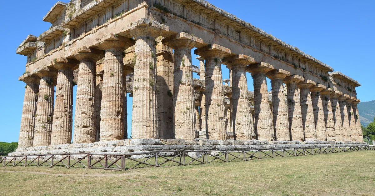 Paestum, also known by its original Greek name as Poseidonia, was a Greek colony founded on the west coast of Italy, some 80 km south of modern-day Naples. Prospering as a trade centre it was conquered first by the Lucanians and then, with the new Latin name of Paestum, the city became an important Roman colony in the 3rd century BCE. Today it is one of the most visited archaeological sites in the world due to its three excellently preserved large Greek temples.